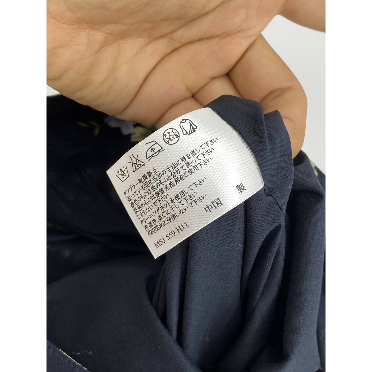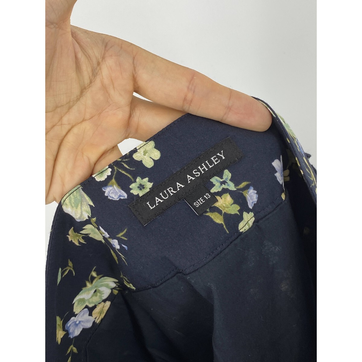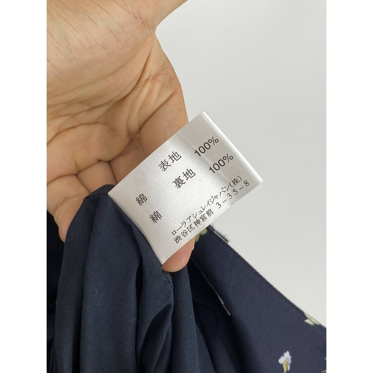 B0915/極美品 LAURA ASHLEY ローラアシュレイ コットン 花柄 総柄 プリーツ ギャザー フレア 膝丈 ミモレ丈 スカート 13 XL 紺 レディース