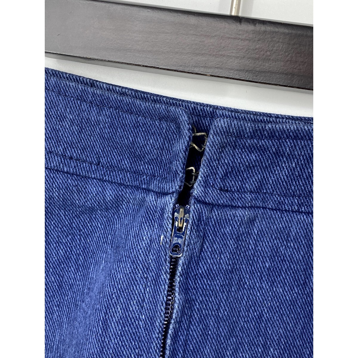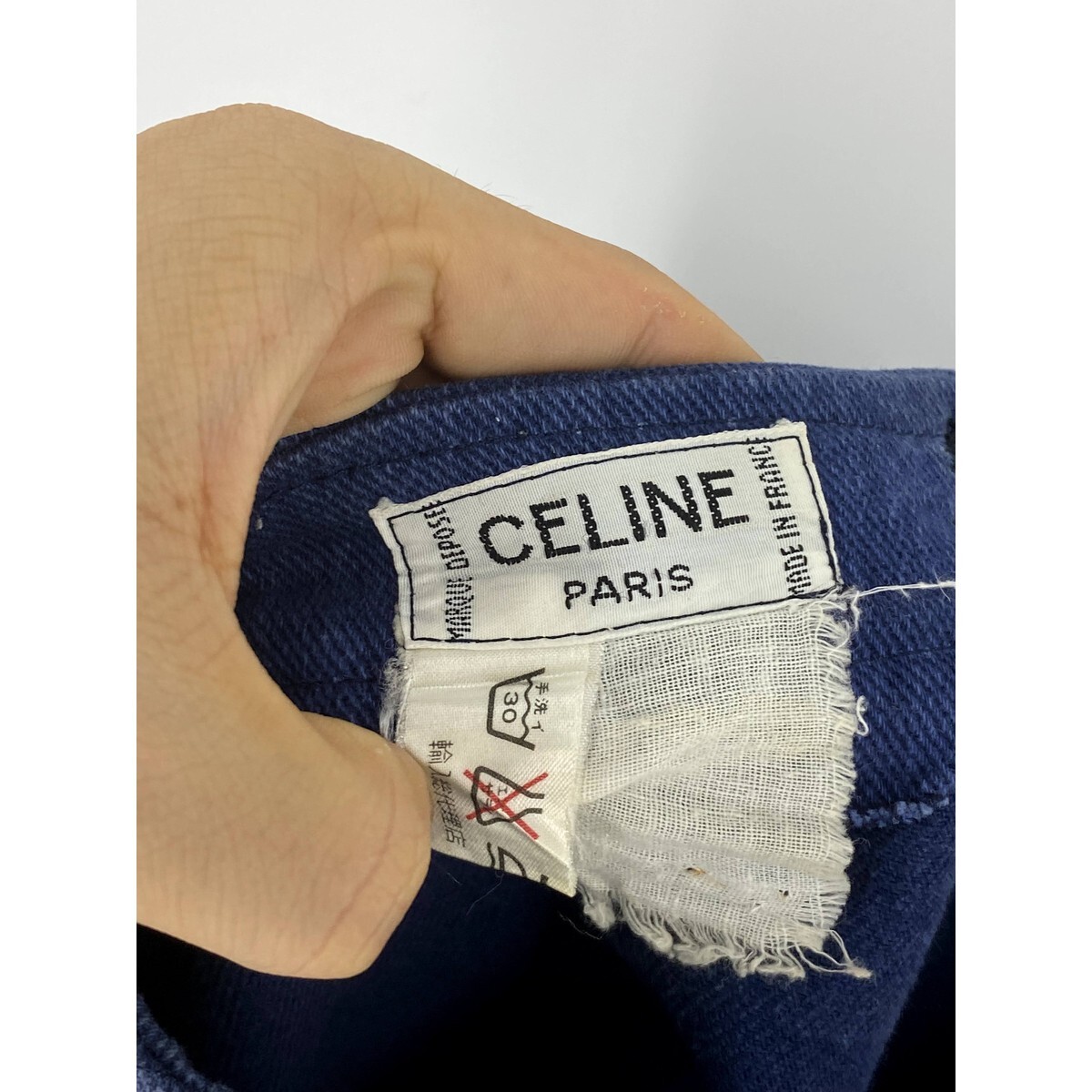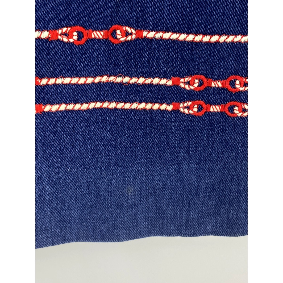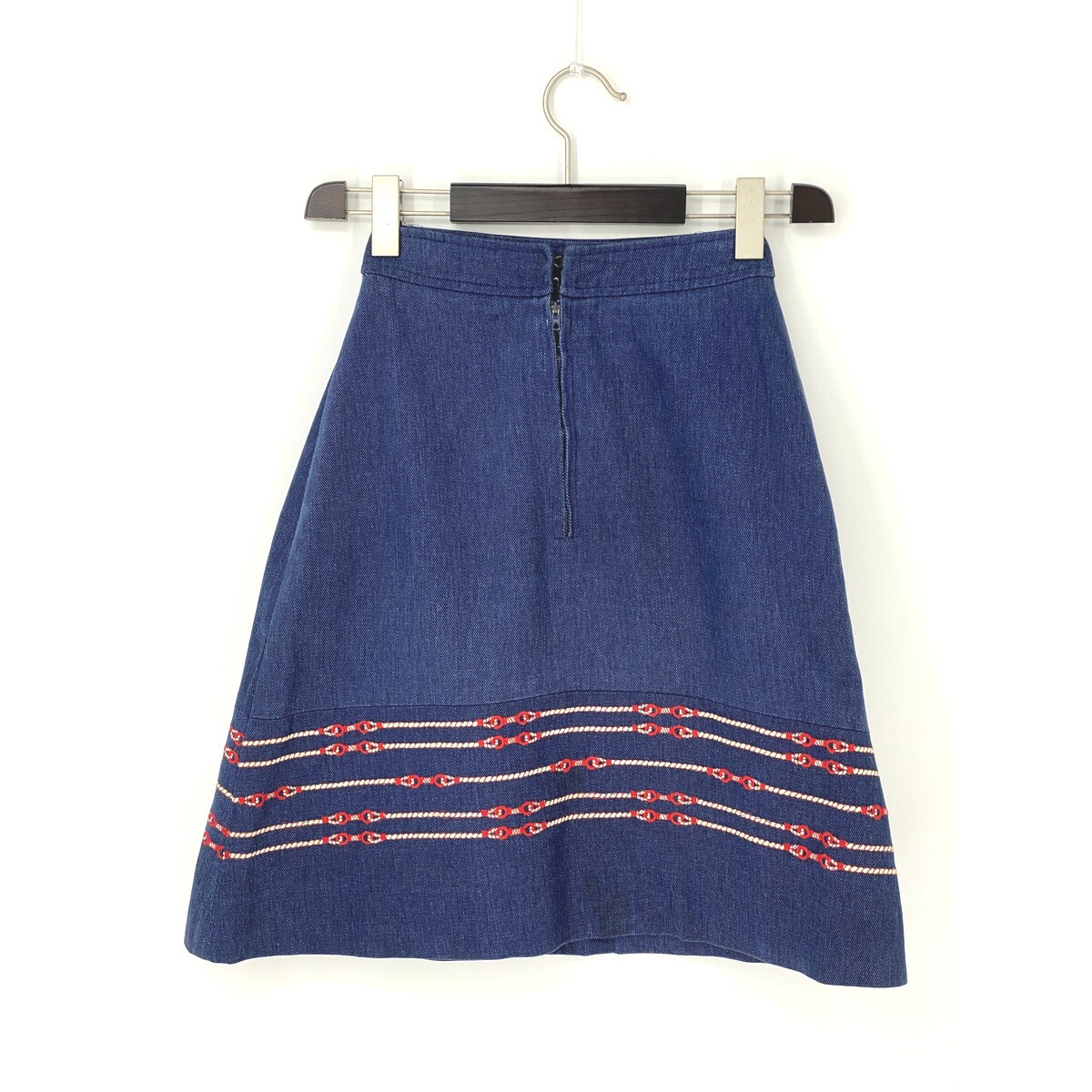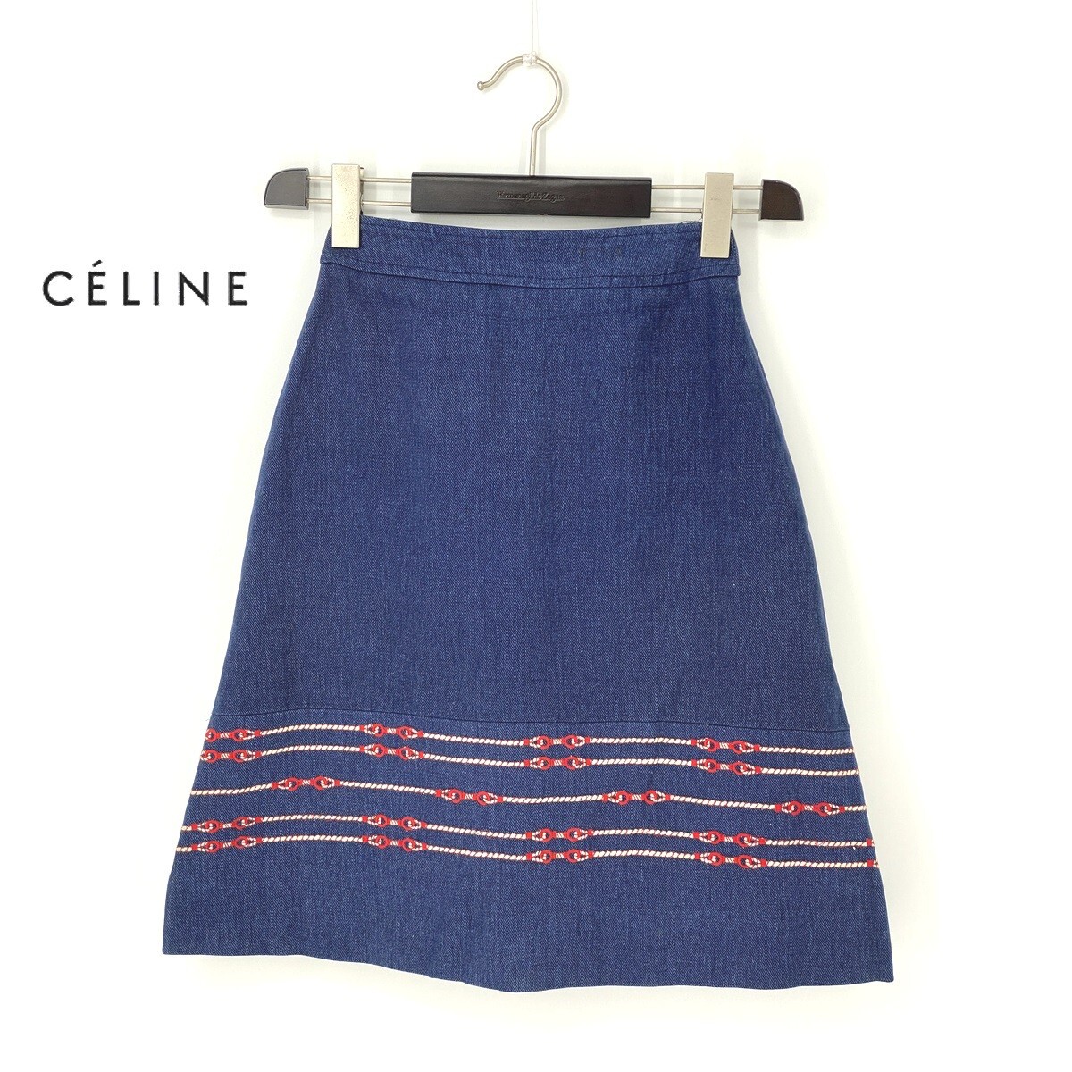 A7505/ビンテージ 美品 春夏 CELINE セリーヌ デザイン ガンチーニ 刺繍 台形 フレア 膝丈 スカート S程 青/フランス製 レディース レトロ
