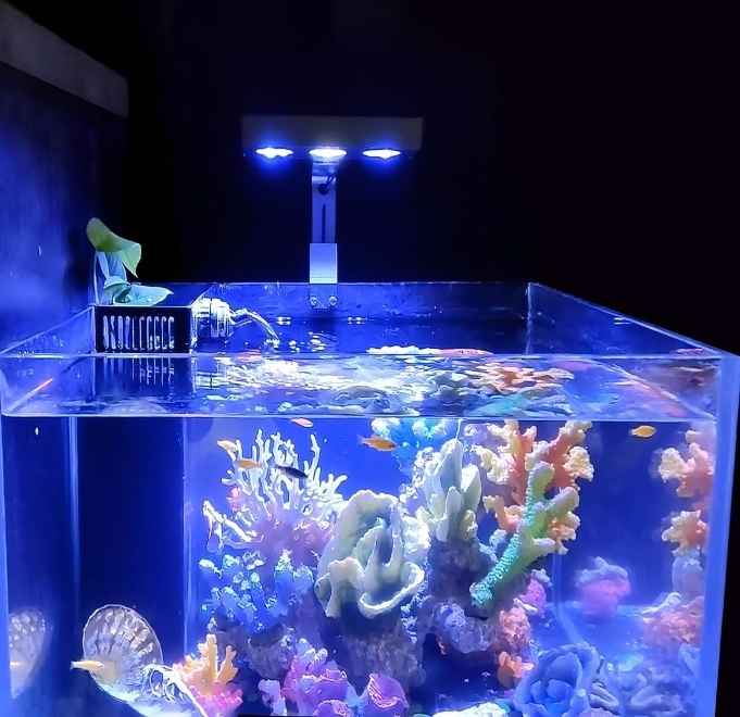 ▲タッチコントロール式の2つの調光可能LEDチャンネル -- このライトの海水照度は0%から100%まで調整可能です。様々な海のペット(サンゴ礁または魚)に適した照明に合わせて簡単に調光でき、ライトの下で繁殖するすべてのSPSやLPSの成長を促進します。完全な青色光はサンゴがより鮮やかな色を発色するようにサンゴのカルシウム吸収を助けるビタミンD3の生成を促進するため、サンゴ、プラティパス、その他の生物に適しています