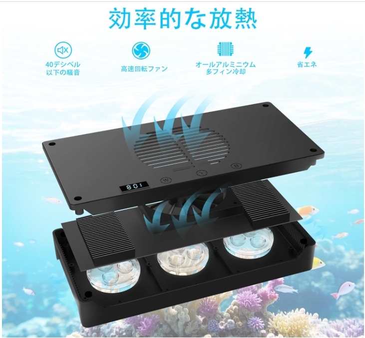 第3世代A029は8/10/12時間を設定できます.当社のLEDアクアリウムライトに採用されている5W高出力Cree社製LEDによる適切な青色光と白色光の比率が深海の環境を再現し、サンゴの発生と発色を手助けします。Hipargero Aqua Knight LEDアクアリウムライトは海水魚水槽用カスタマイ3枚107度ズレンズを採用することにより高い照明効率と抜群の色の均一性を実現しています