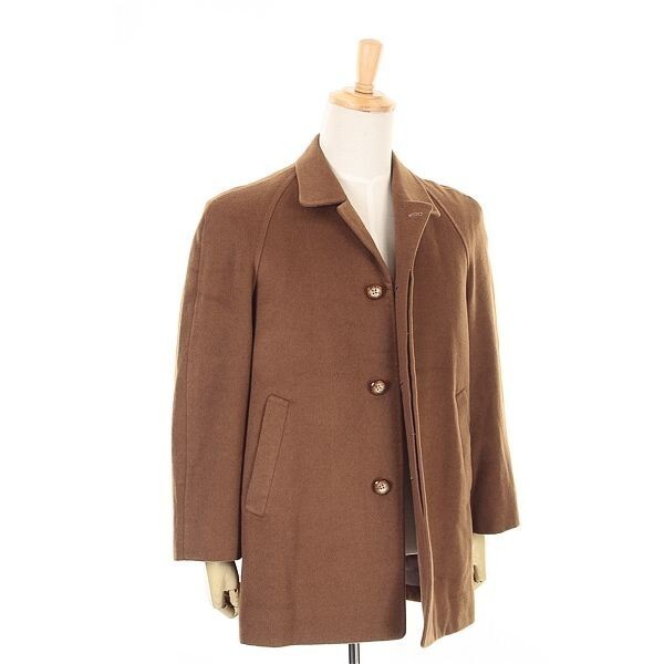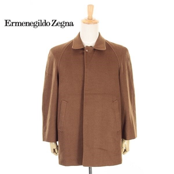 A4960/極美品 秋冬 MISUGI Ermenegildo Zegna ゼニア生地 カシミヤ100 比翼 無地 ハーフ バルマカーン ステンカラーコート L程 茶/メンズ