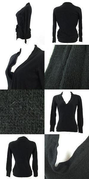 ワードローブに一枚あると便利な黒のアンサンブルニットです♪ シンプルなVネックは生地をゆったりとドレープさせたお洒落心をくすぐるデザインが◎! カーディガンのフロント部分もゆるいカーブを描き一味違った雰囲気に♪ 大人の上質スタイルにぜひどうぞ☆ 素材の特性上、毛羽立ちが見られます。 カーディガン 肩幅約30cm バスト約84cm 着丈約56cm 袖丈約57cm インナー 肩幅約30cm バスト約84cm 着丈約57cm 袖丈約58cm 【サイズ】:(S) 【素 材】:(ウール37%・レーヨン30%・ナイロン20%・アンゴラ8%・カシミヤ5%) 【 色 】:(黒) 【程 度】:(AB) 12130318-007 299 023 | ||||