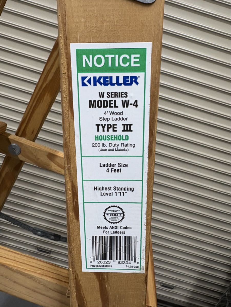 希少 KELLER ケラー W-4 Type III Wシリーズ ウッドステップラダー 木製脚立 4フィート