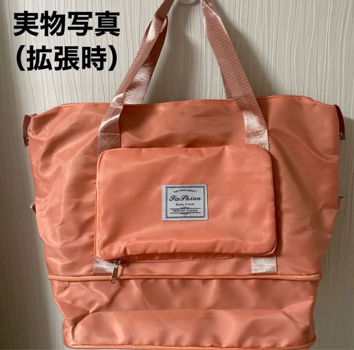使わないときは、コンパクトに折りたたんで持ち運びできて、荷物が増えたら、底面のファスナーを開けるだけで、約12cmも高さが伸びます!