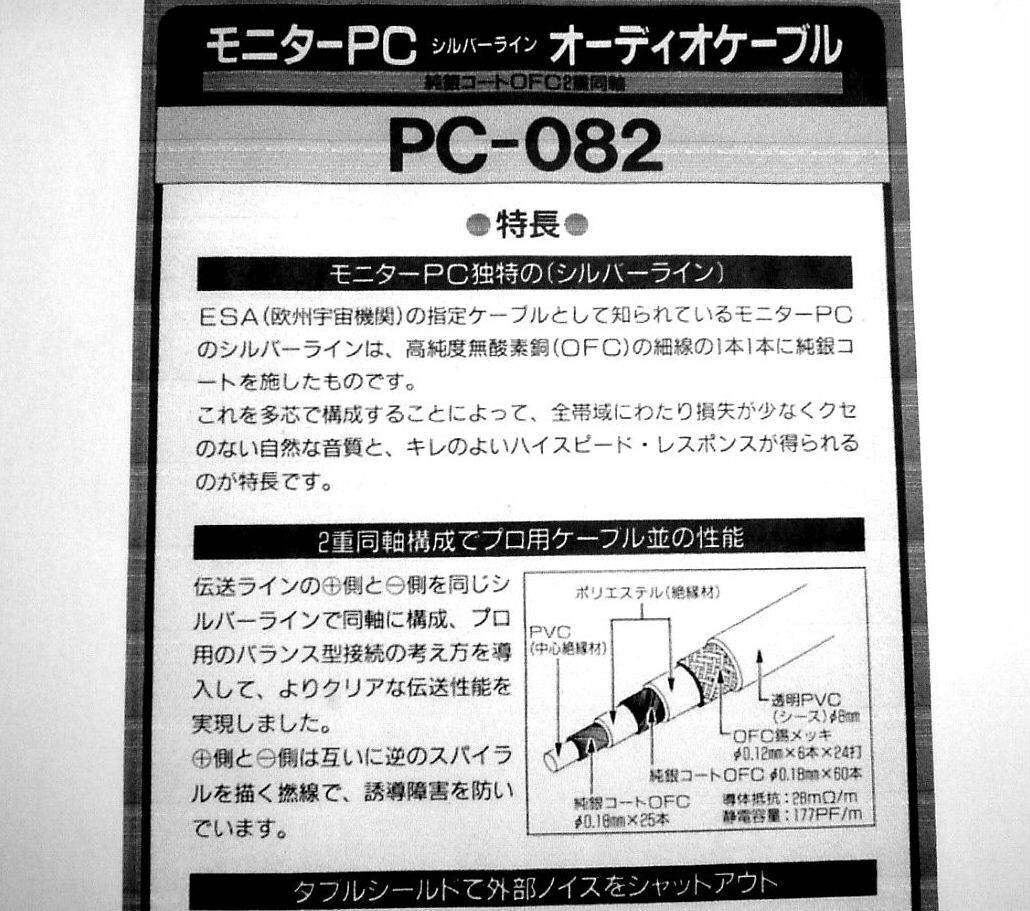 ■同社の純銀コートRCAライン製品は最高位で極太の本ケーブルPC-082の他に下位でPC-055がございました やはり比較すると本ケーブルは極太で単品販売もございました高品位プラグも採用されて風格ともに音質も満足できる内容に仕上がっております