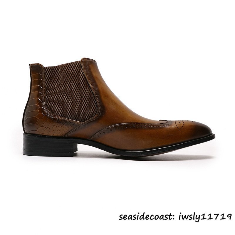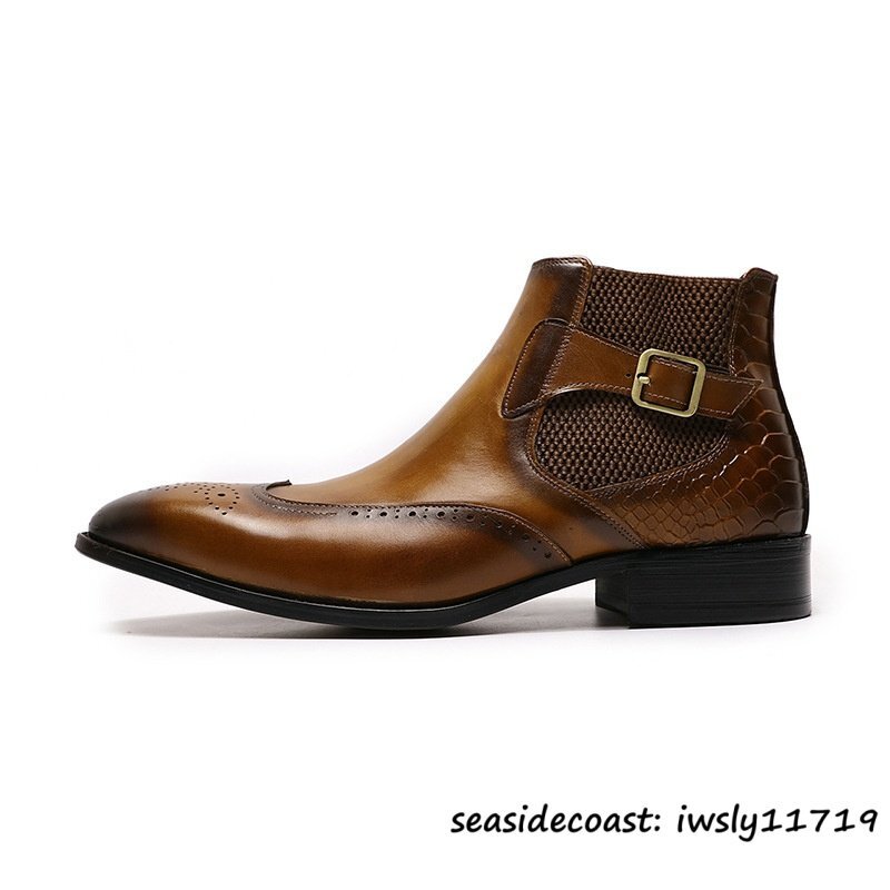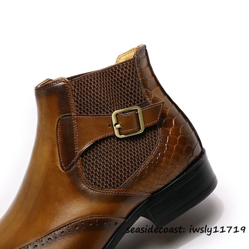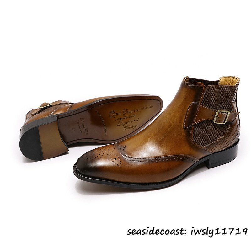 新品◆定価12万 マーティンブーツ メンズ 本革 レザーブーツ ショートブーツ 高級牛革 職人手作り 彫り 美品 皮靴 紳士靴 ブラウン 28.0cm