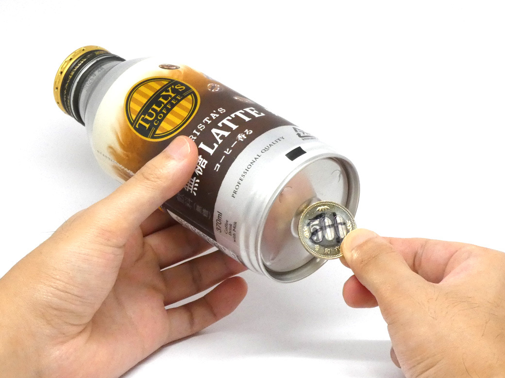 貫通の前後で缶を全角度から検めることができ、コインのデュプリケイトも不要です。