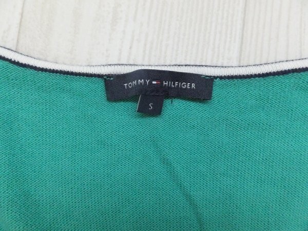 TOMMY HILFIGER トミーヒルフィガー メンズ Vネック ワンポイント刺繍 コットンニットソー S 緑 です。