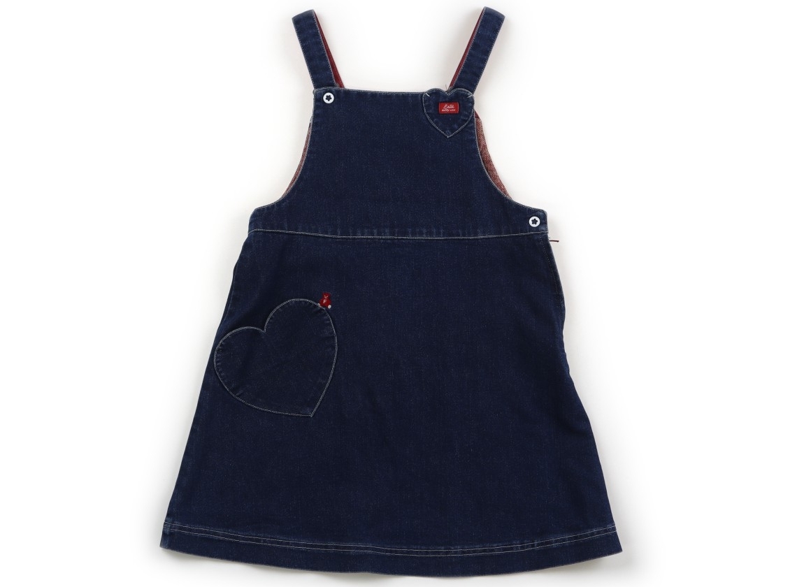 デニム生地で、胸の裏地がツイード生地です。脇ファスナーあき。使用感はありますが、目立つ汚れはなくまだまだお使い頂けそうです。