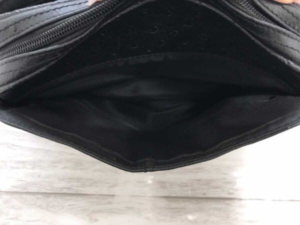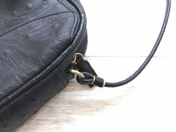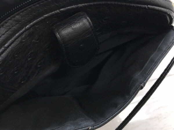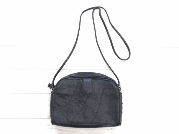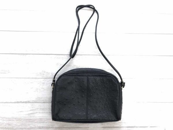 レトロ オールド クラシック フェミニン エレガント オーストリッチ 本革レザー 半月型 ショルダーバッグ レディース 両外ポケット 黒 です。