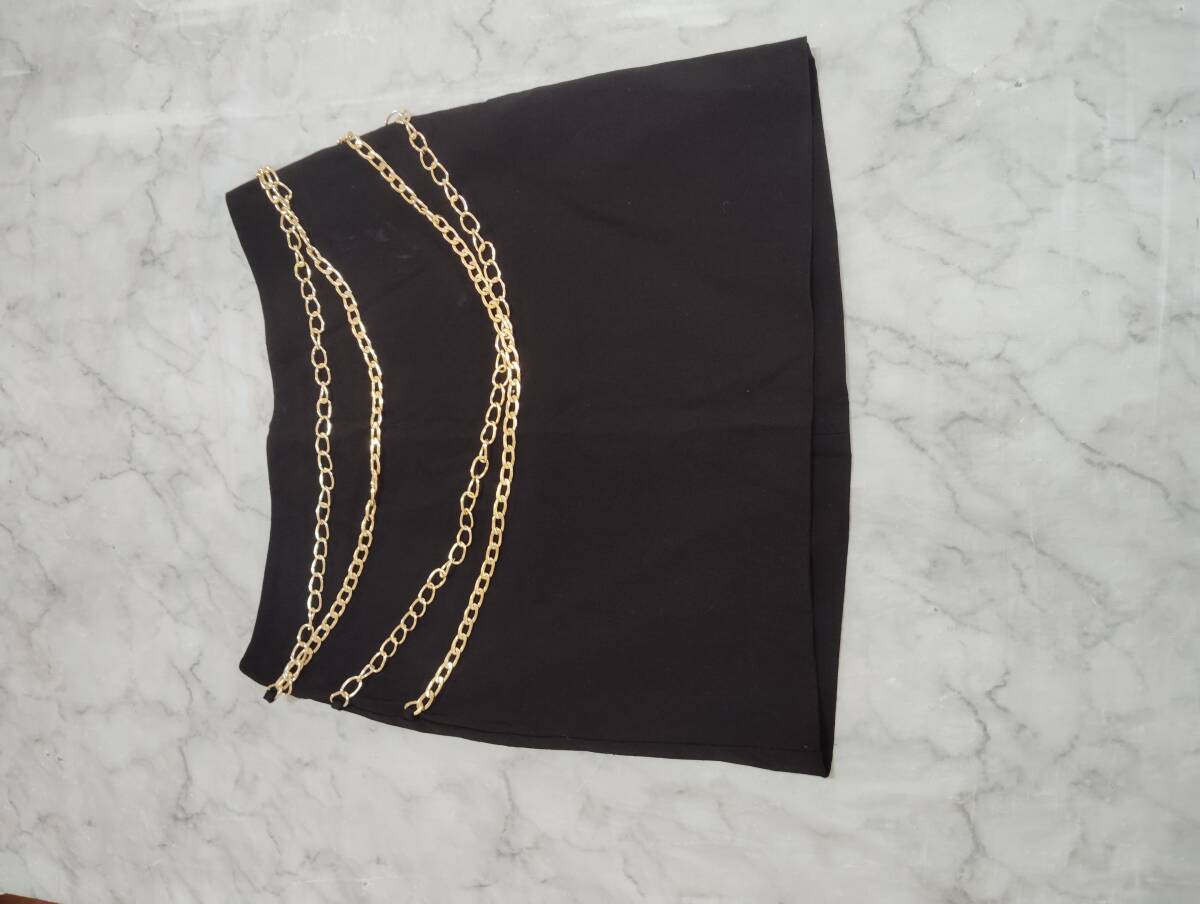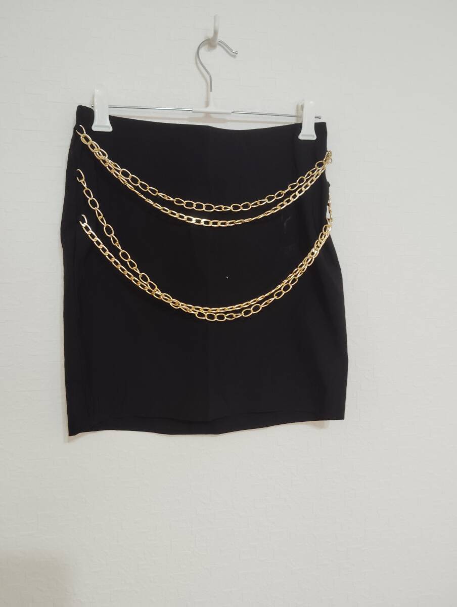 少し汚れがあります。サイズは小さめです。チェーン付きのスカートでおしゃれ抜群です。どんな服装にも合いそうです。