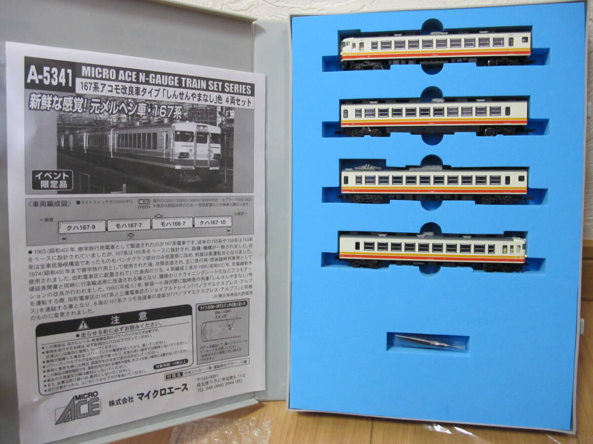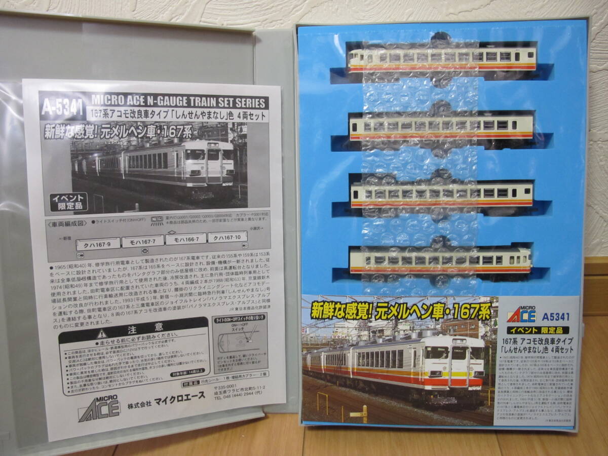 未使用品 MICROACE A-5341 イベント限定品 167系アコモ改良車タイプしんせんやまなし色4両セットになります。