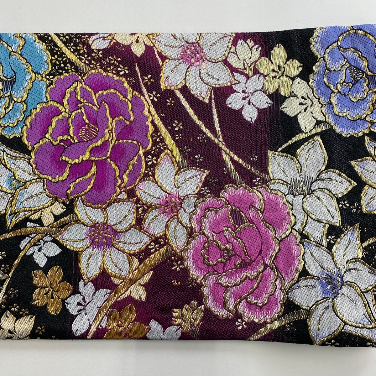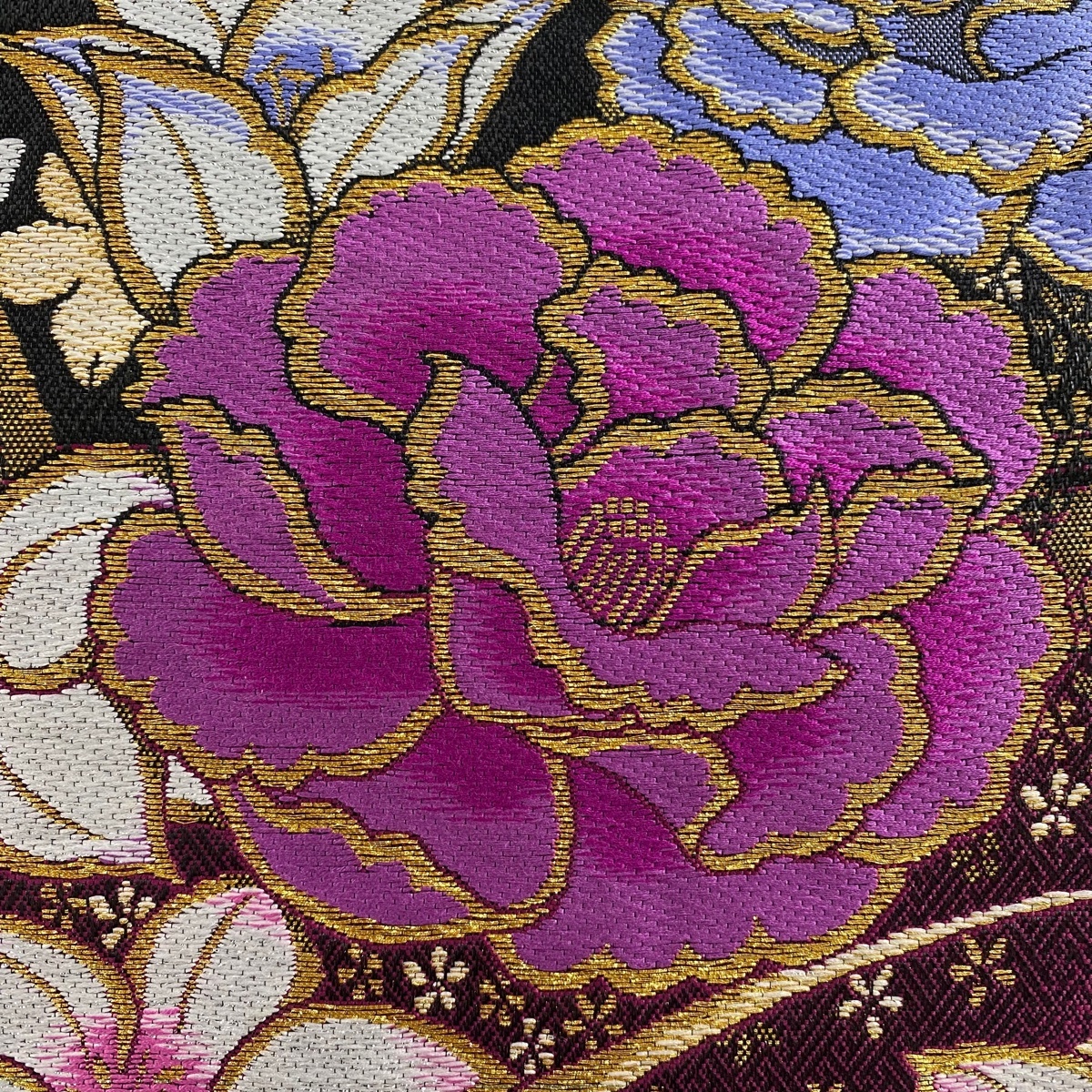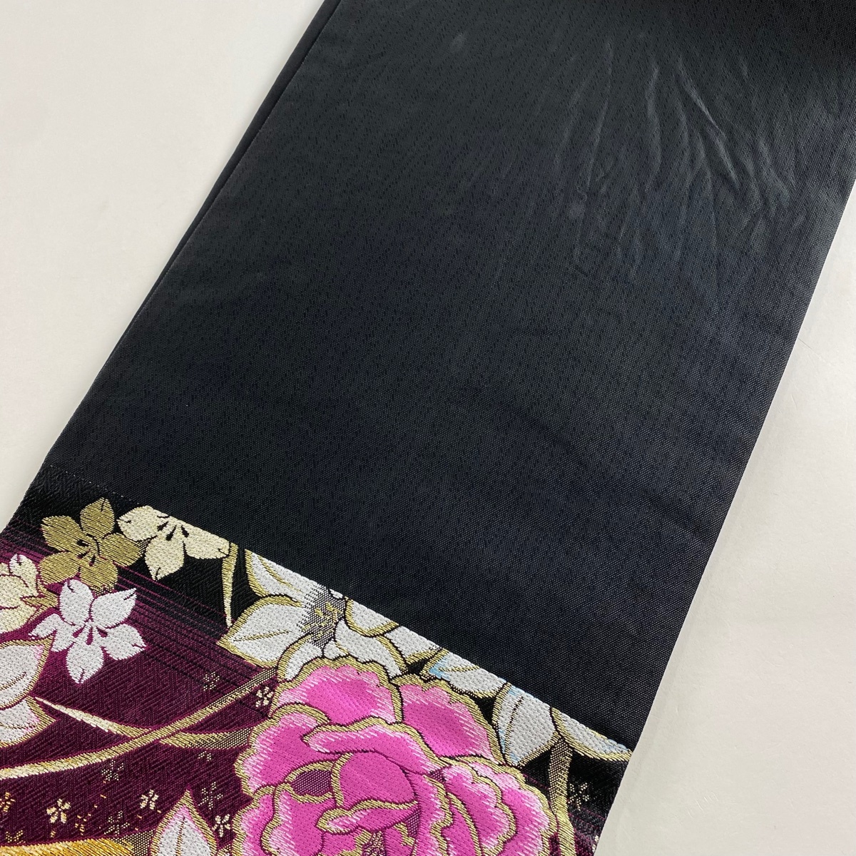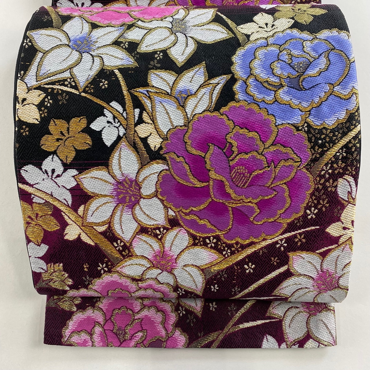 | 袋帯 美品 秀品 振袖向き 草花 金糸 箔 赤紫 六通 正絹 【中古】 |