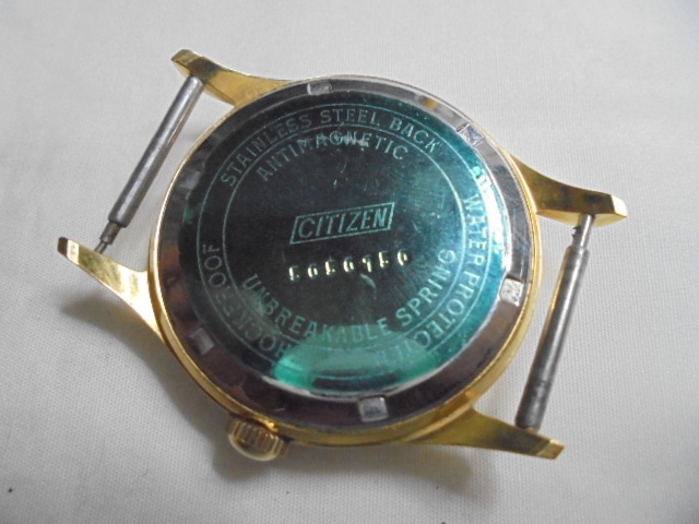 長期保管に伴う少々のスレやきずがあります。現状で動いてます。ケースがシチズン製です。一般保管されてた物です。こちらでは表面的な軽い掃除と簡易動作確認のみです。クリーニングや調整・修理等は御自身で対応御願い致しますオーバーホール前提でお願いします。その点を考慮して御入札願います