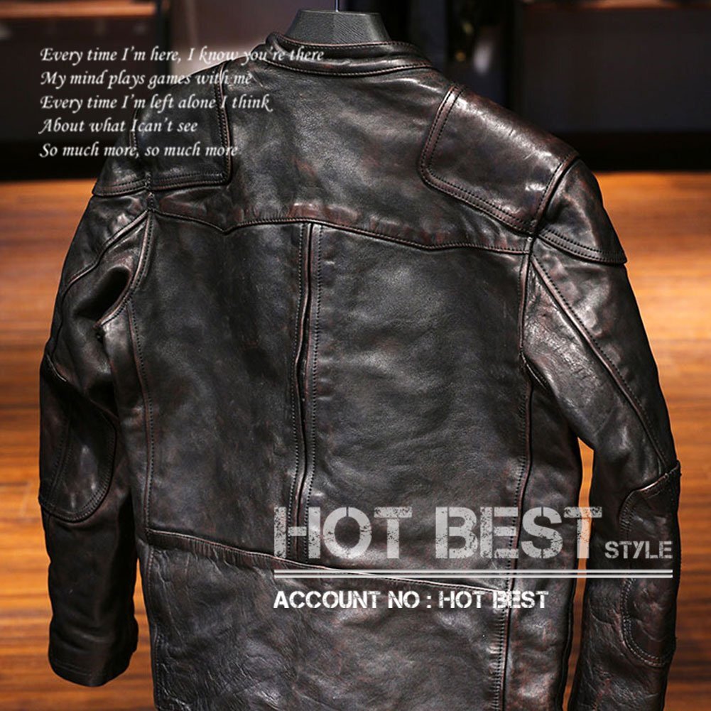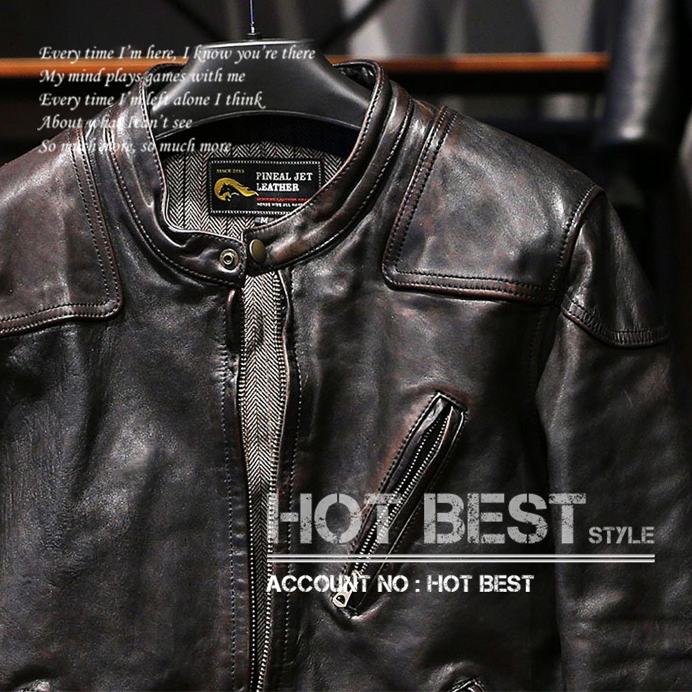 最高峰 1.4mm 茶芯ホースハイド メンズ 復刻50's ヴィンテージ加工 パテッド シングルライダース レザージャケット 馬革【XXL】HBY675