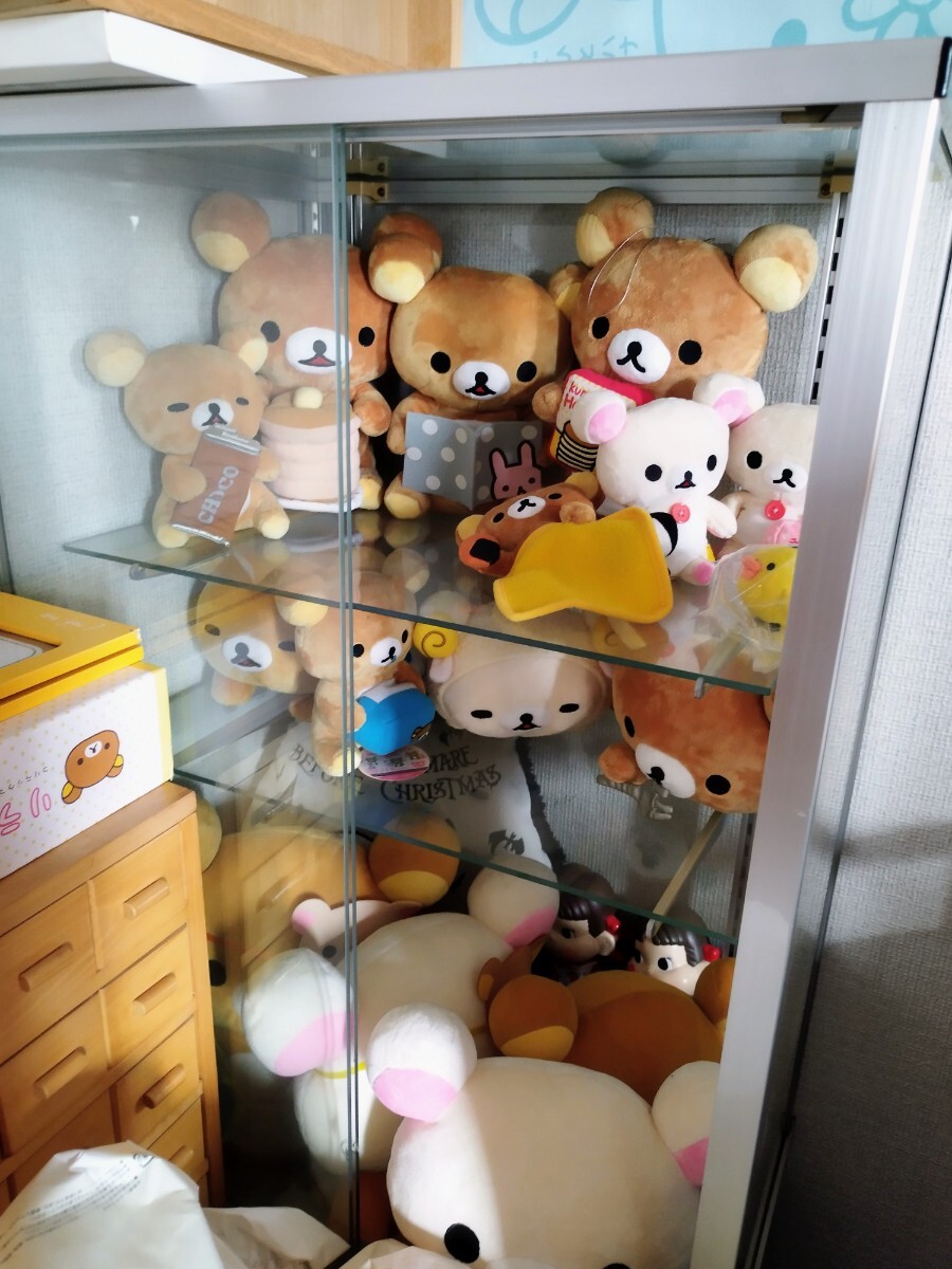 リラックマが誕生した年から娘達が好きで画像10のガラスケース内の子達です。嫁に行き近5年はカーテンを閉めて、たまに換気に入るだけの部屋での保管品です。