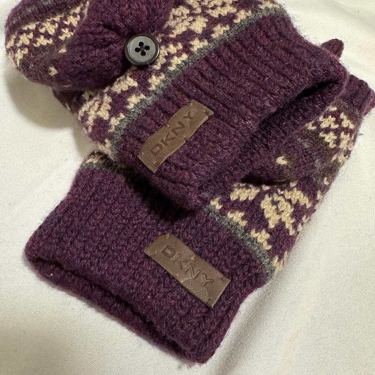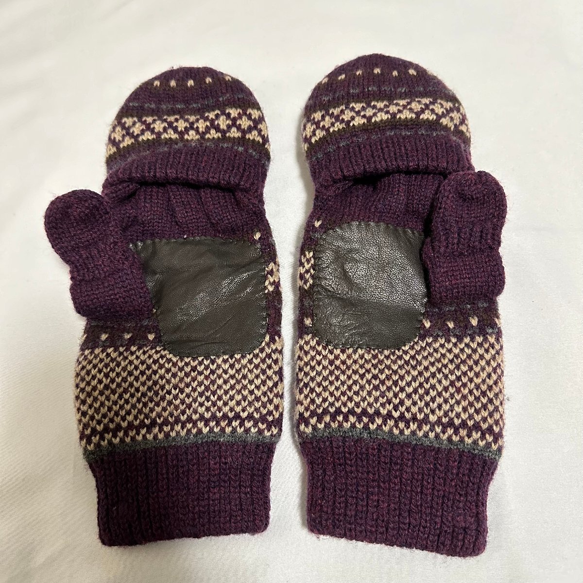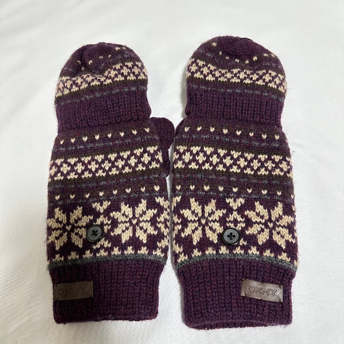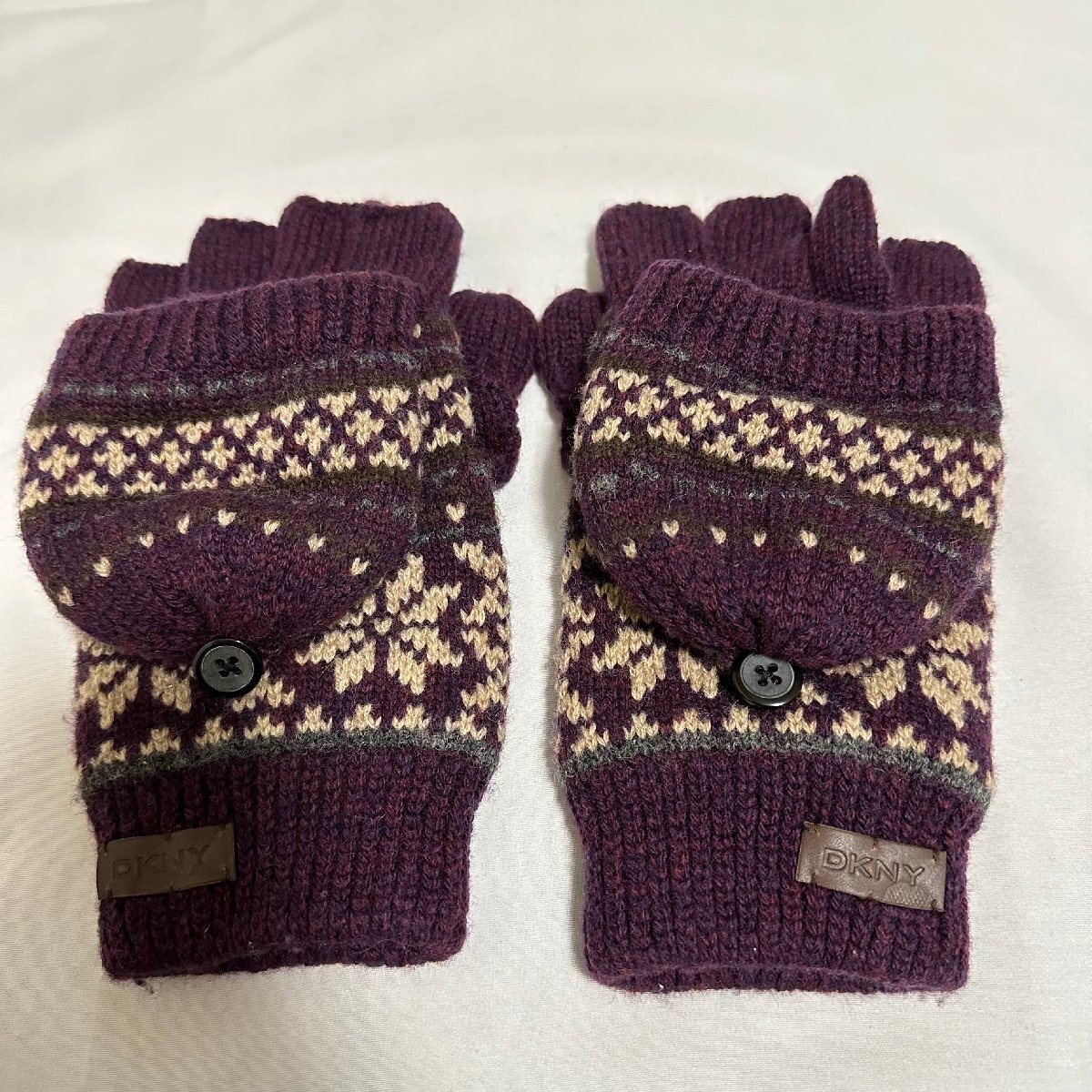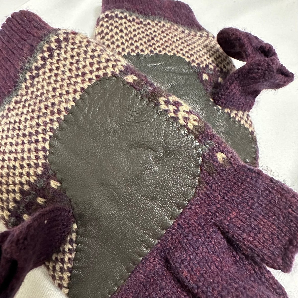 q2760 DONNA KARAN ダナキャラン DKNY 手袋 ミトン ニット レザー 2way 紫/パープル系 フィンガーレス