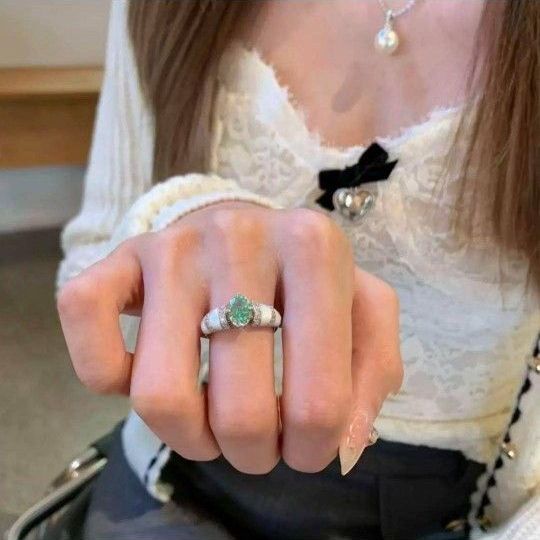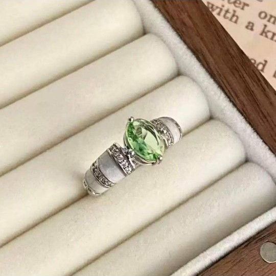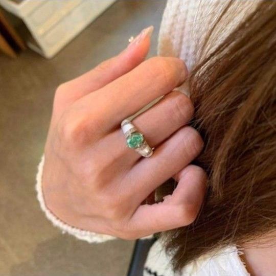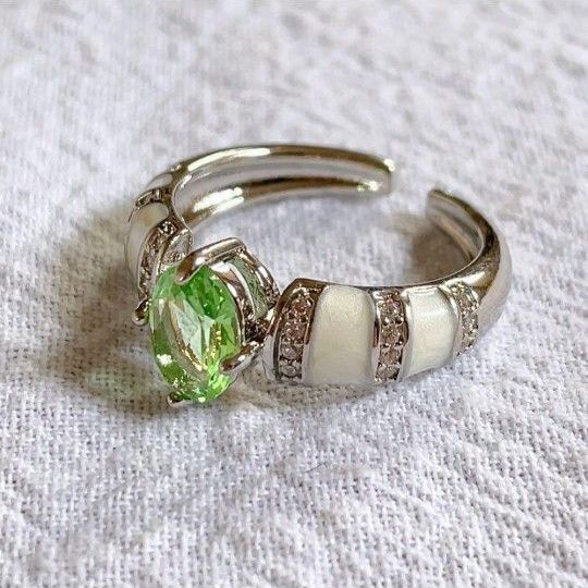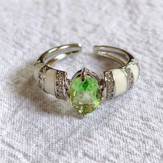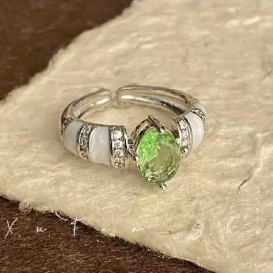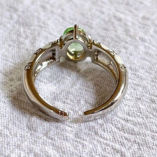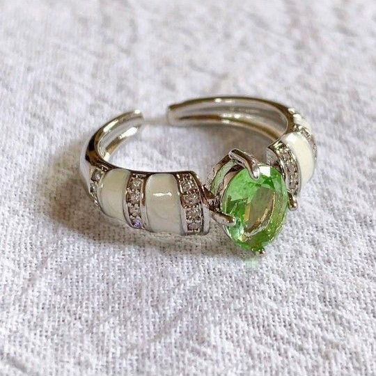 爽やかで上品な印象を与える、ライムグリーンストーンのデザインリングです。