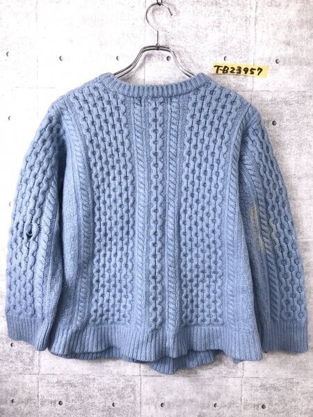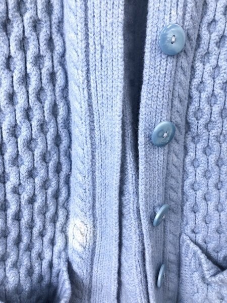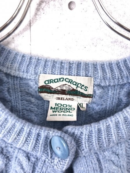 ARAN CRAFTS レディース ウールニットカーディガン ジャケット アイルランド製 ボタンホールなし 大きいサイズ XL 水色 です。