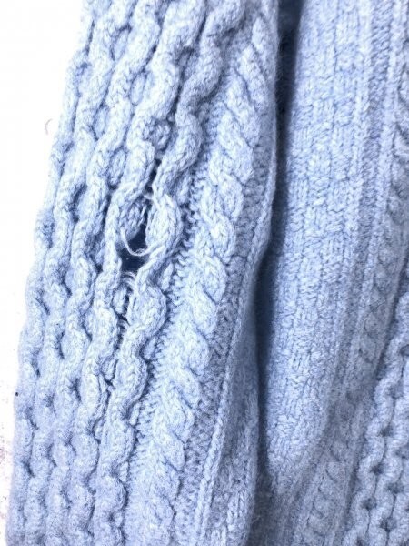 備考/目立つダメージ:右袖・前色落ち、左袖ほつれ