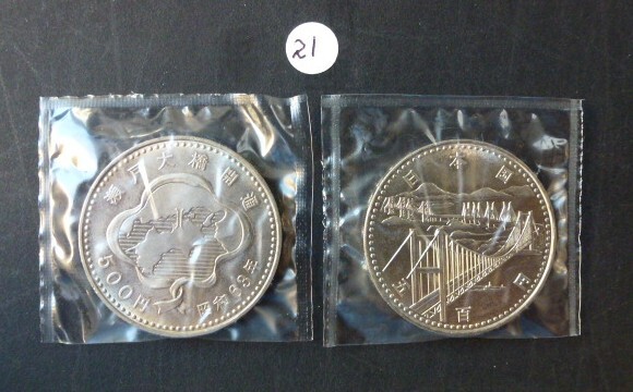 500円 瀬戸大橋開通記念500円白銅貨 2枚組 未使用 完美品 銭-21