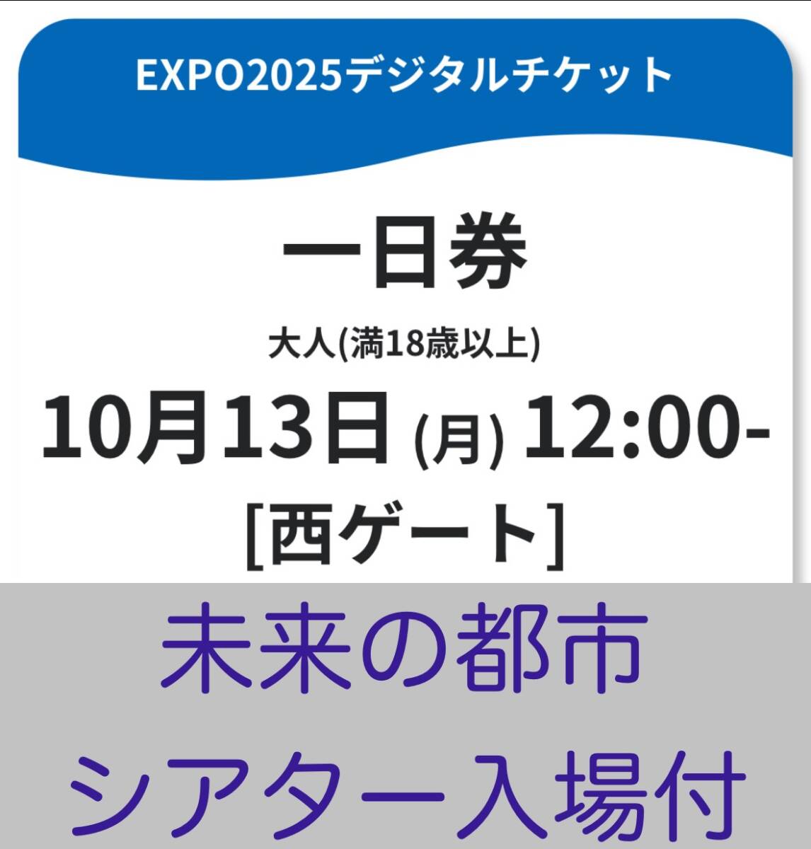 【1〜2枚】大阪万博 EXPO2025 一日券 入場チケット 大阪 関西万博 西ゲート 10/13 10月13日 万博 チケット 未来の都市 パビリオン 予約済