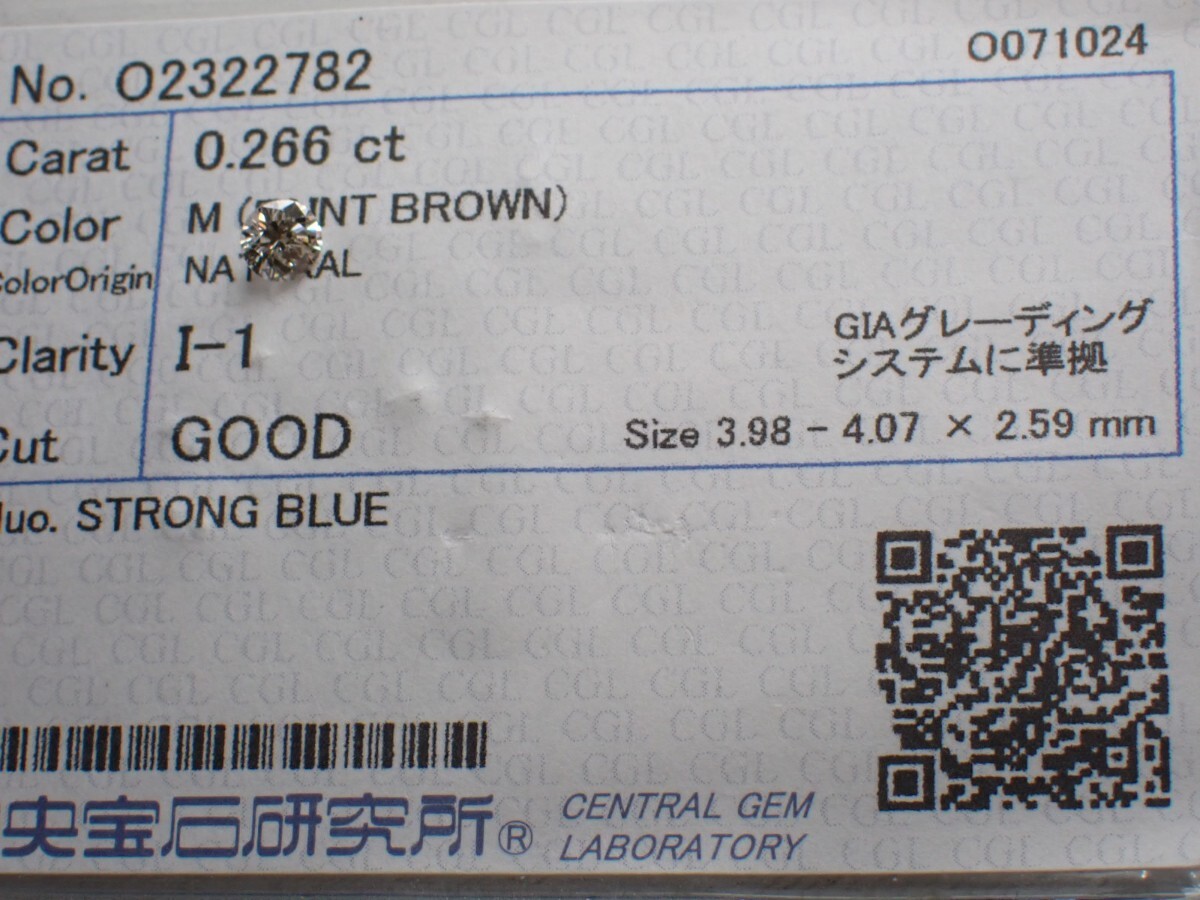 D0.266ct M I1 GOOD 天然ダイヤモンドルース 裸石 NATURAL DIAMOND sorting 中央宝石研究所ソーティング付き