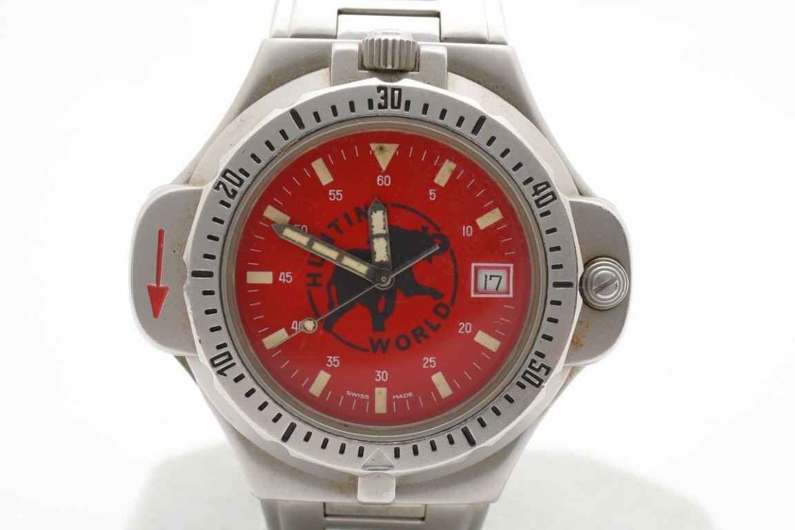 HUNTING WORLD SPORT ABOUT ハンティング ワールド スポーツ アバウト クォーツ 腕時計 メンズ 3針 デイト レッド シルバー