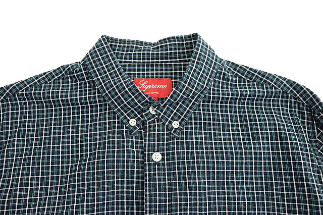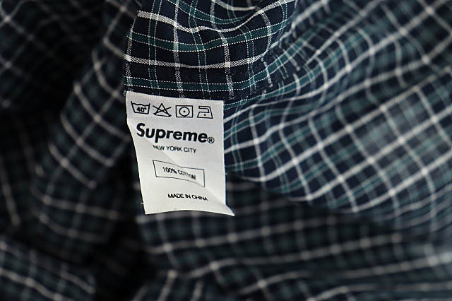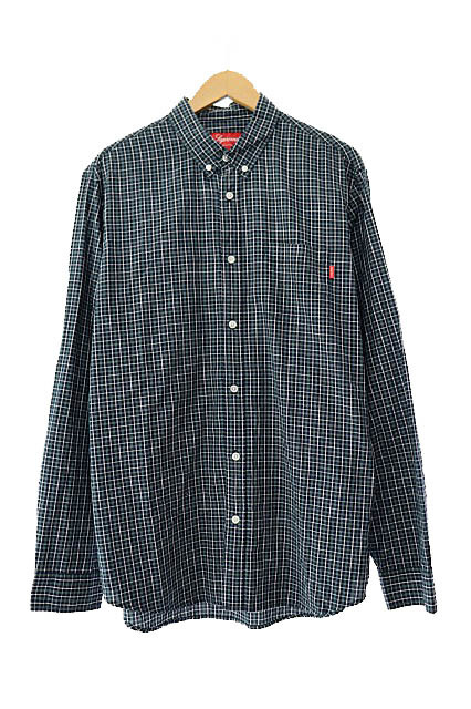シュプリーム SUPREME Small Plaid Shirt スモール ロゴ プレイド チェック柄 ボタンダウン 長袖 シャツ L 緑 紺 グリーン ネイビー 251007 メンズ