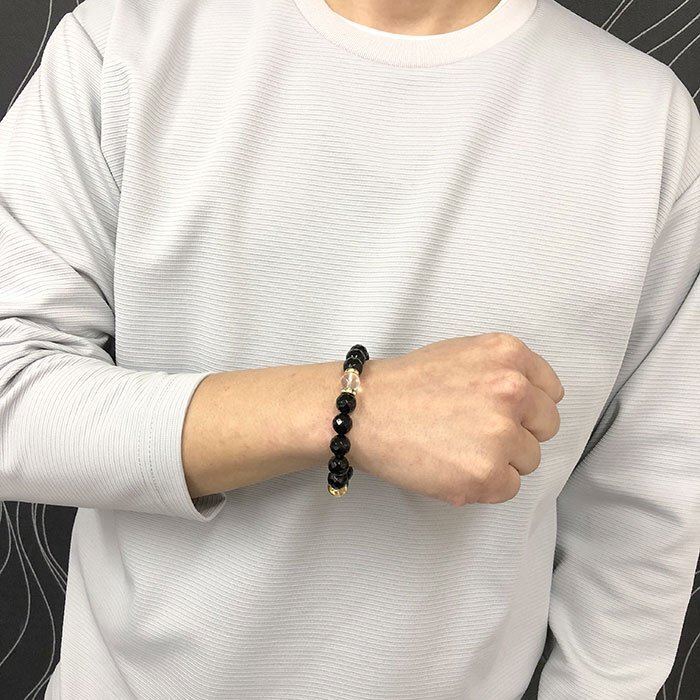 【STONE KITCHEN 天然石 パワーストーン】 人気のメンズ寄りユニセックスなデザインだから ペアブレスレットとしておススメ☆ 2人で達成したい目標がある、2人の夢がある、 そんな2人にオススメのパワーストーンペアブレスレット♪ ペアブレスレットは、記念日、誕生日、クリスマス、 バレンタインデーなどのプレゼントとしても最適♪ 魔除け・厄除け効果があるブラックオニキスと 組み合わせることで、ネガティブエネルギーを取り除いて 良いサイクルを生み出してくれるでしょう。 サイズ:水晶 10mm オニキスカット 10mm レディース 内周:約16.5cm メンズ 内周:約17.5cm ペア セット 注意事項 ※金属部分は汗や汚れ等で変色する場合がございます。気になる場合は金属磨きや布等で軽くふき取る事をおすすめします。 ※石の種類によっては、艶を引き出すことを目的として、ワックスや着色加工がされているものもあります。 ※表示のサイズは必ずしも最大値・最小値のサイズのものが入っているわけではございません。 ※天然石のため同じものでも色味・模様などが異なります。 ※照明の具合で実際とは色合いが異なる場合がございます。 また、天然素材特有のクラック・内包物を有する場合がございます。予めご了承下さい。 | |||