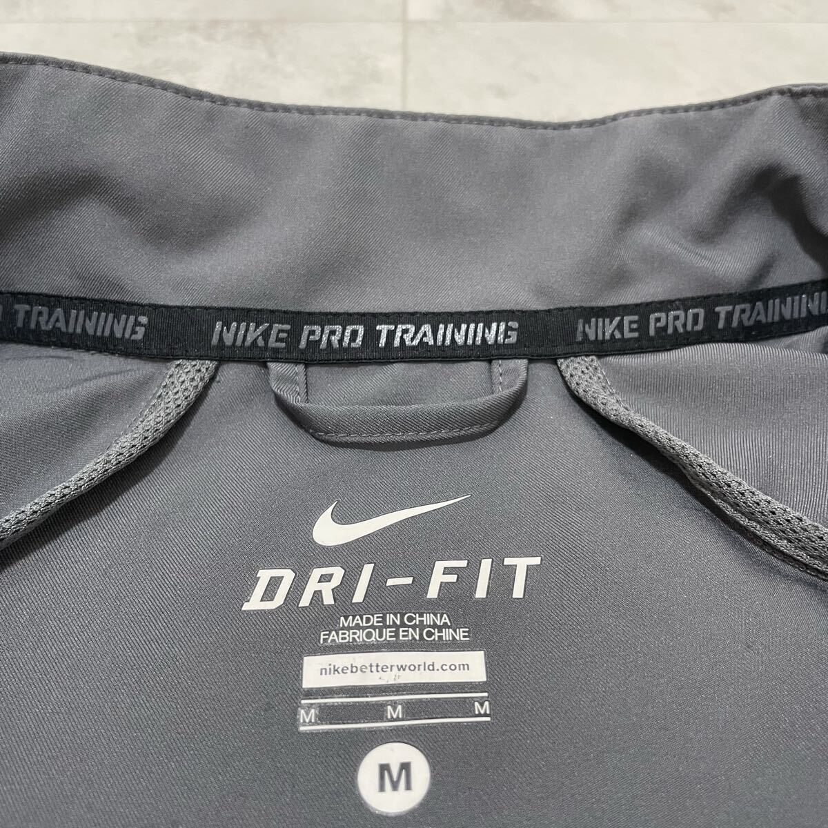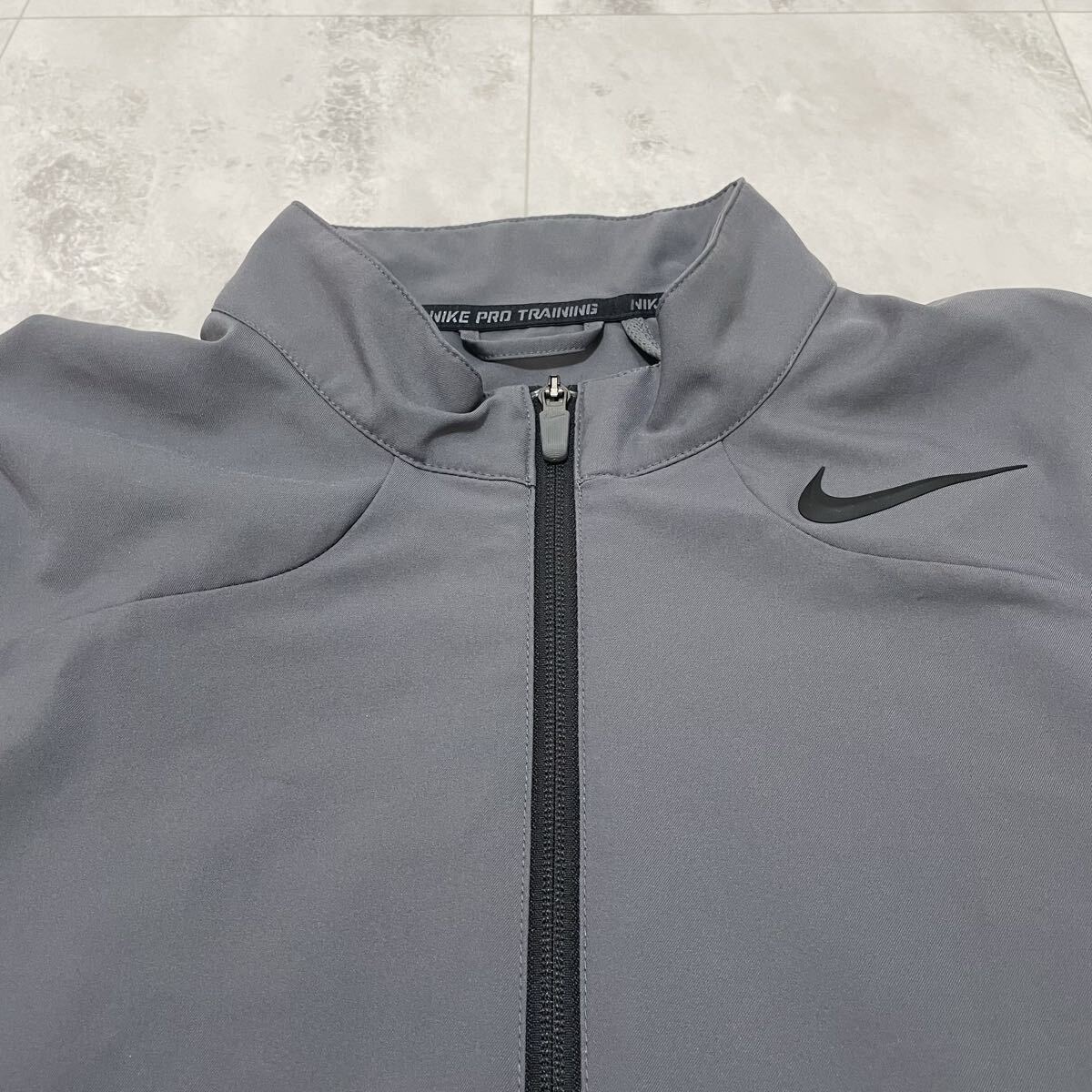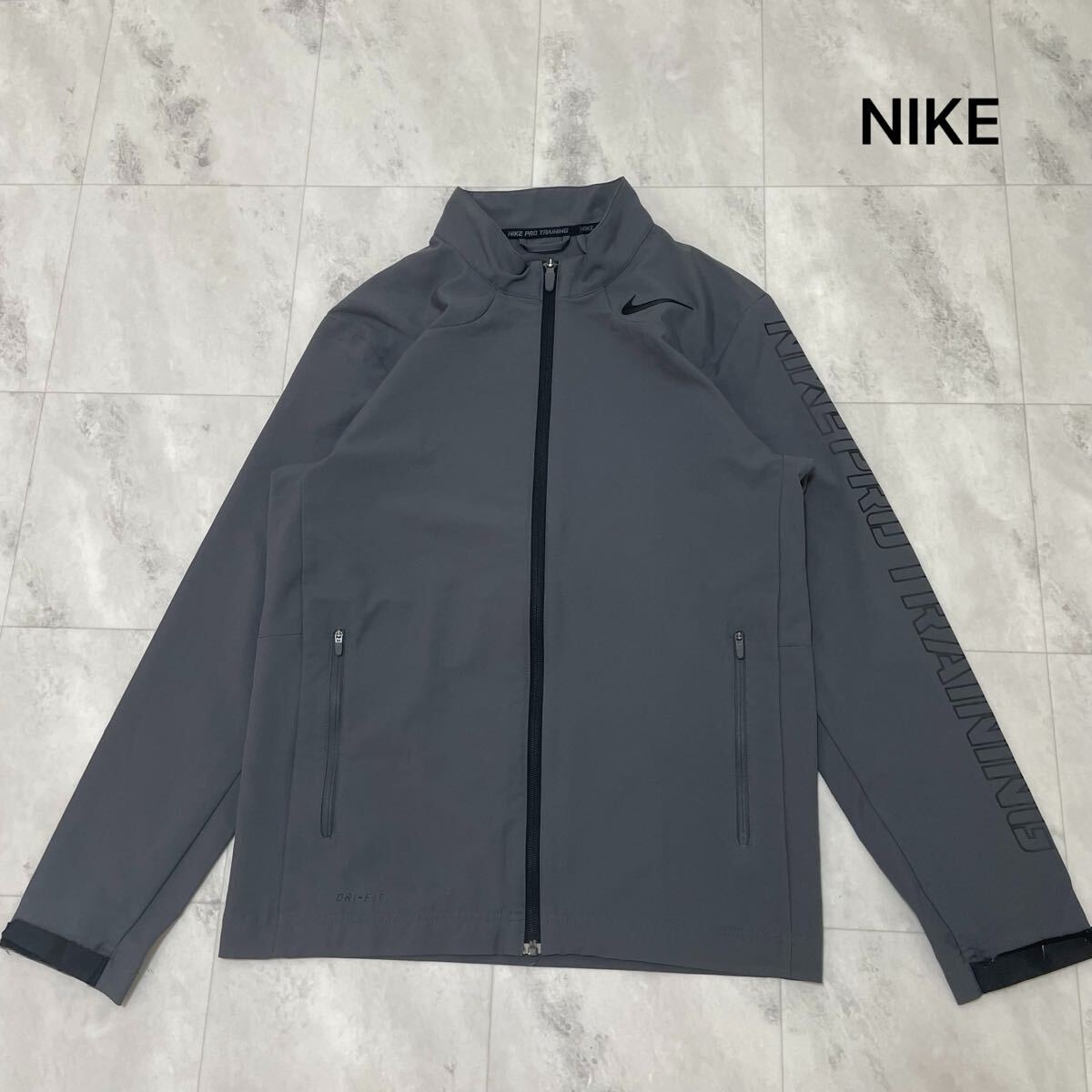 NIKE ナイキ PRO TRAINING ナイロンジャケット ジップジャンパー 刺繍ロゴ ライトアウター フルジップ アメカジ ドライフィット グレー サイズM 玉na1182
