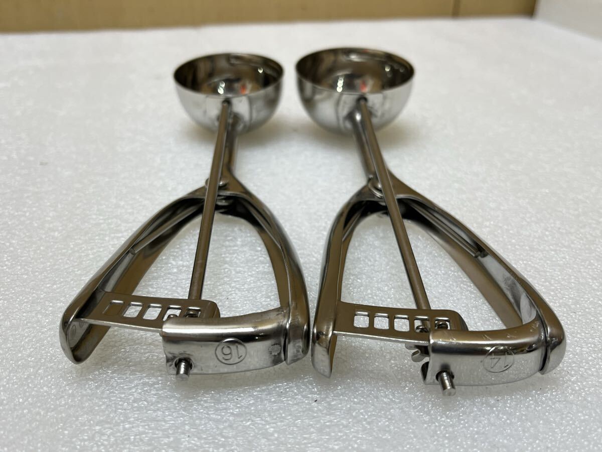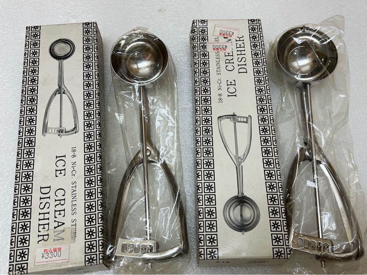 RE7706 YUKIWA アイスクリームディッシャー 18-8 STAINLESS ICE CREAM DISHER ♯14/16 2点まとめ 現状品 1007