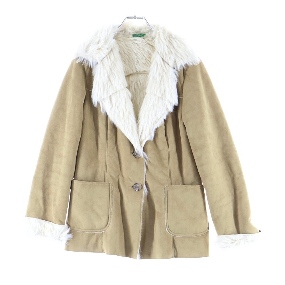 ノーブランド united colors of benetton ベネトン フェイクスウェード ファーライニング 2B テーラードジャケット ベージュ レディース