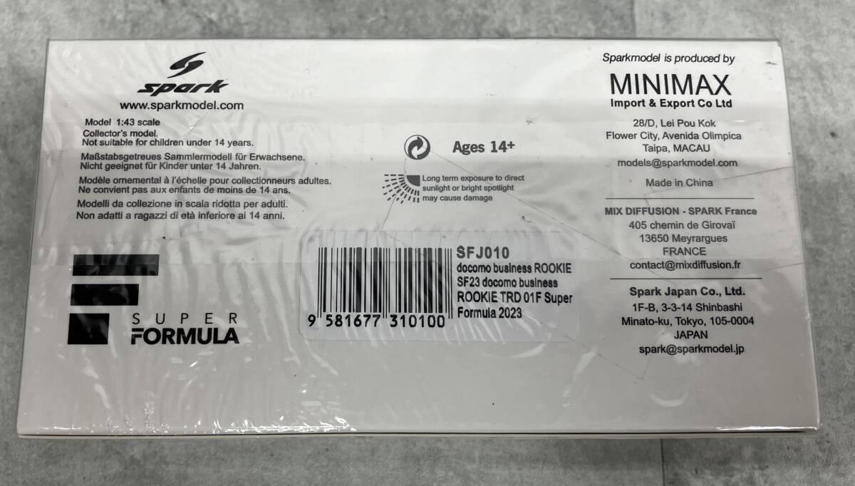 Spark model 1/43 docomo business ROOKIE SF23 No.14 docomo business TRD 01F Super Formula 2023 Kazuya Oshima Spark model