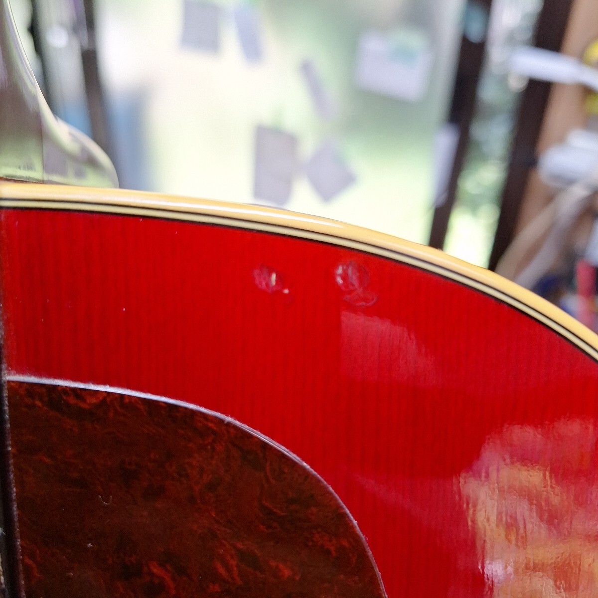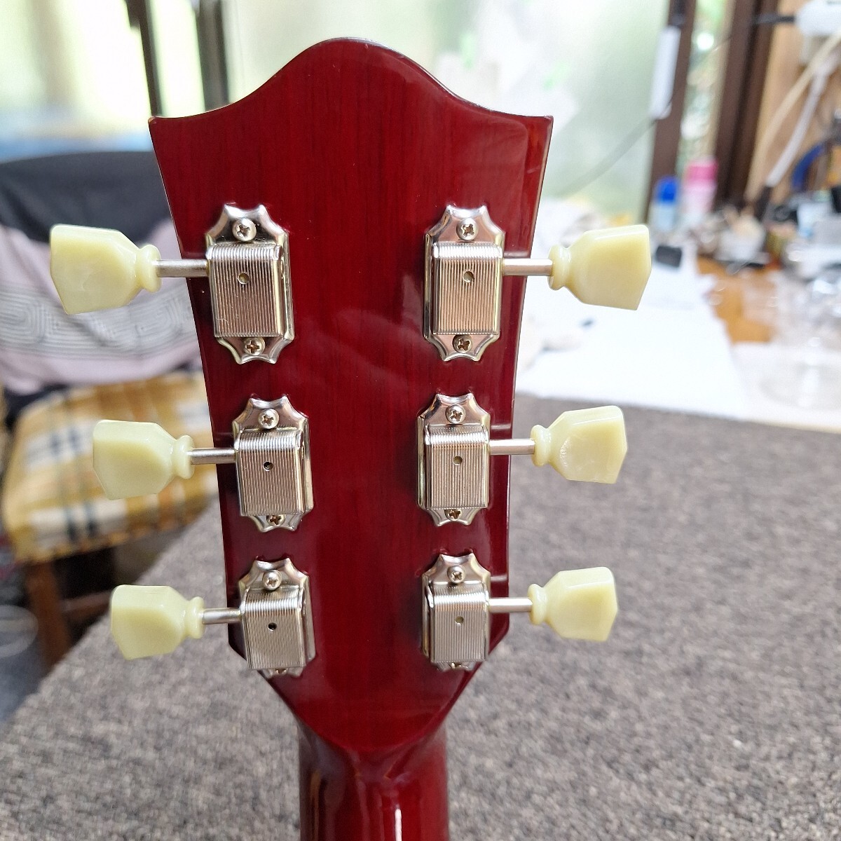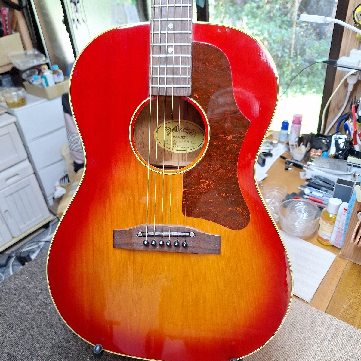 弦タッチの優しいプレイヤービリティ-、サスティーンの効いたキラキラの煌びやかなサウンド、チェリーサンバースト、どれをとってもステージ映えのする、ブルースにピッタリの、ギターに仕上がりました。