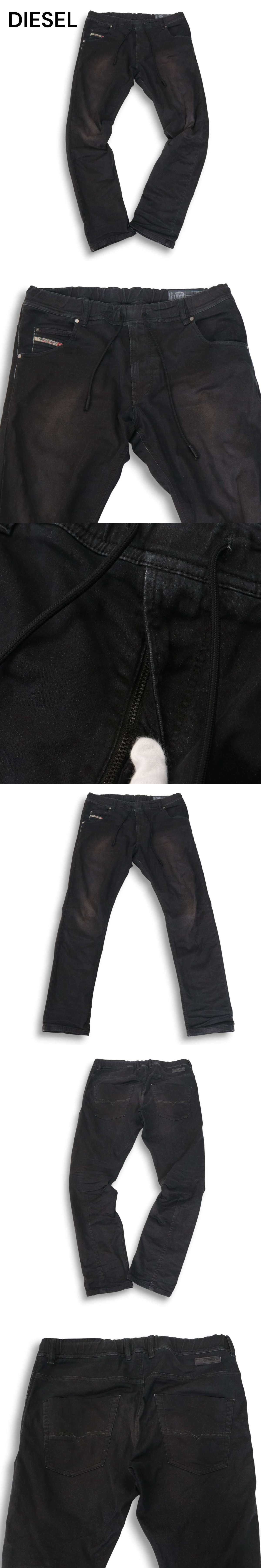 DIESEL ディーゼル 【KROOLEY-NE】 USED加工★ イージー スウェット デニム パンツ ジョグ ジーンズ Sz.32 メンズ 黒
