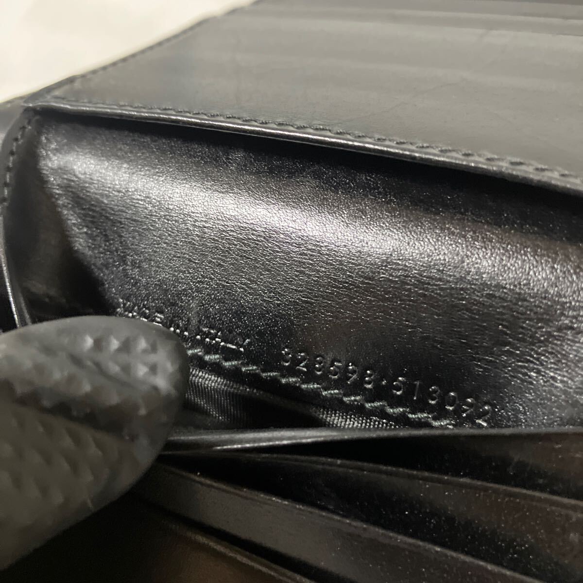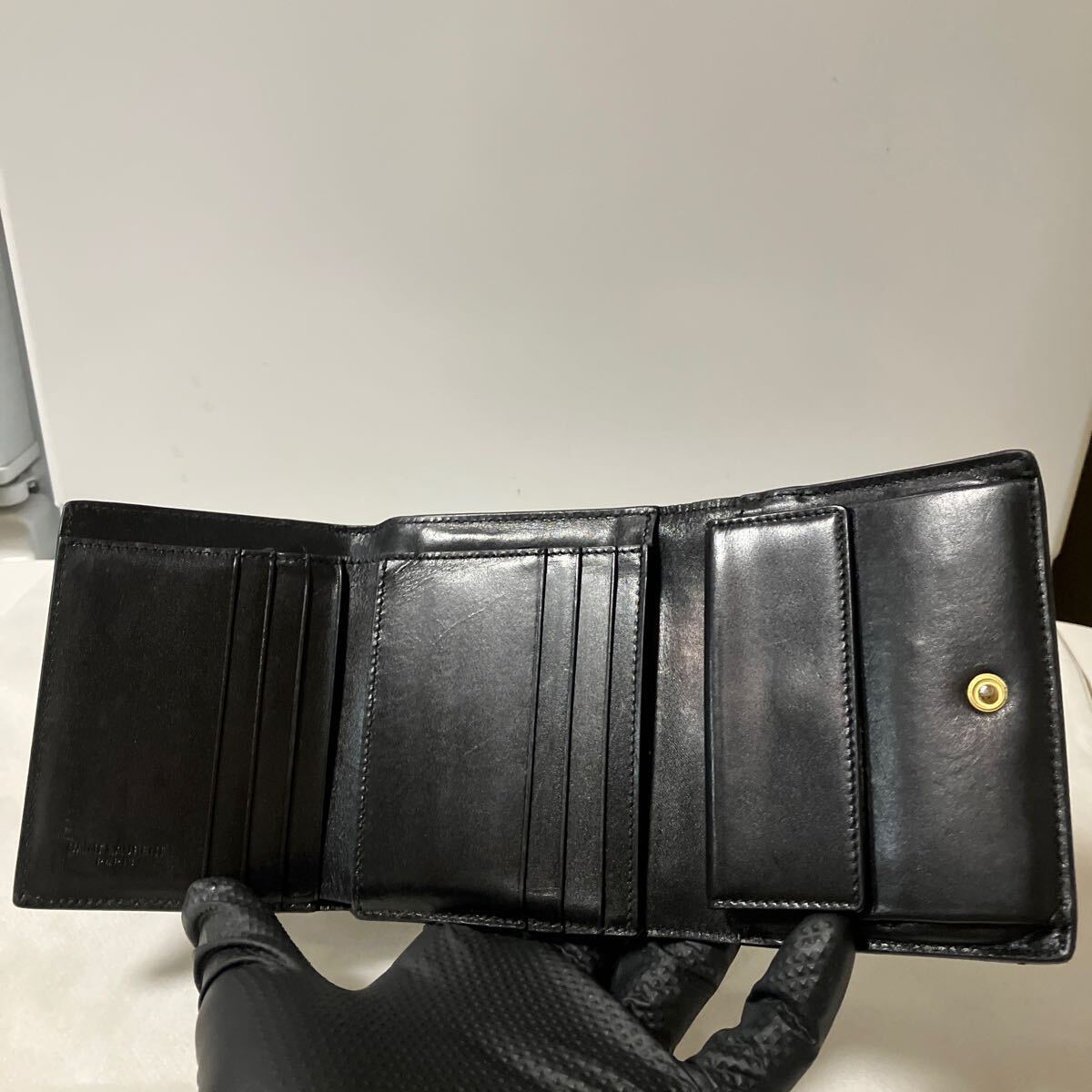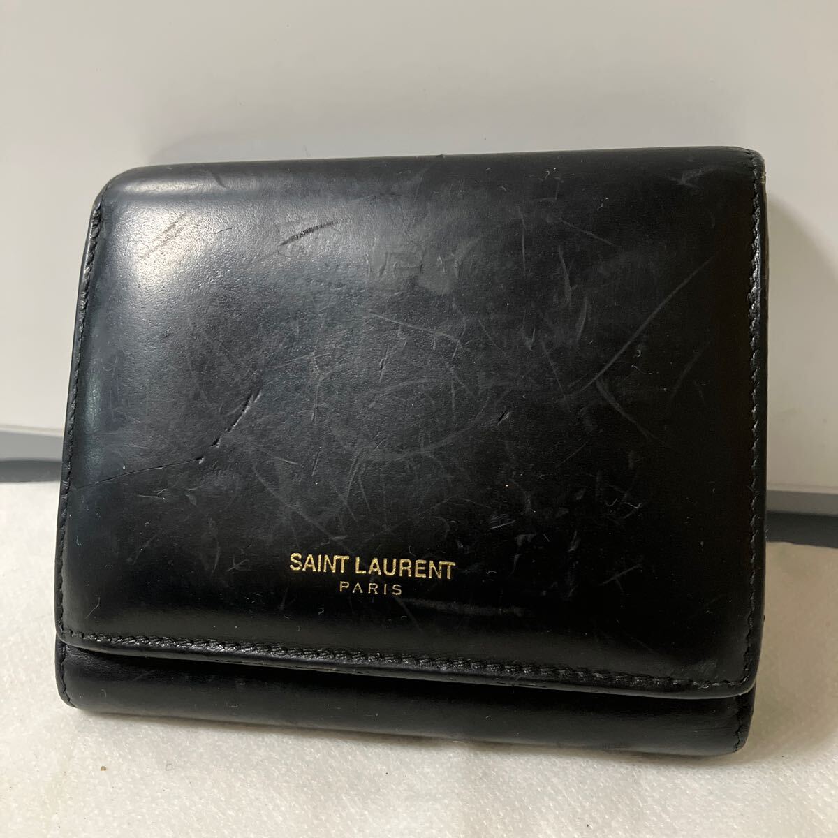【希少】 SAINT LAURENT サンローラン 三つ折り財布 コンパクトウォレット レザー 金ロゴ ブラック シリアルあり