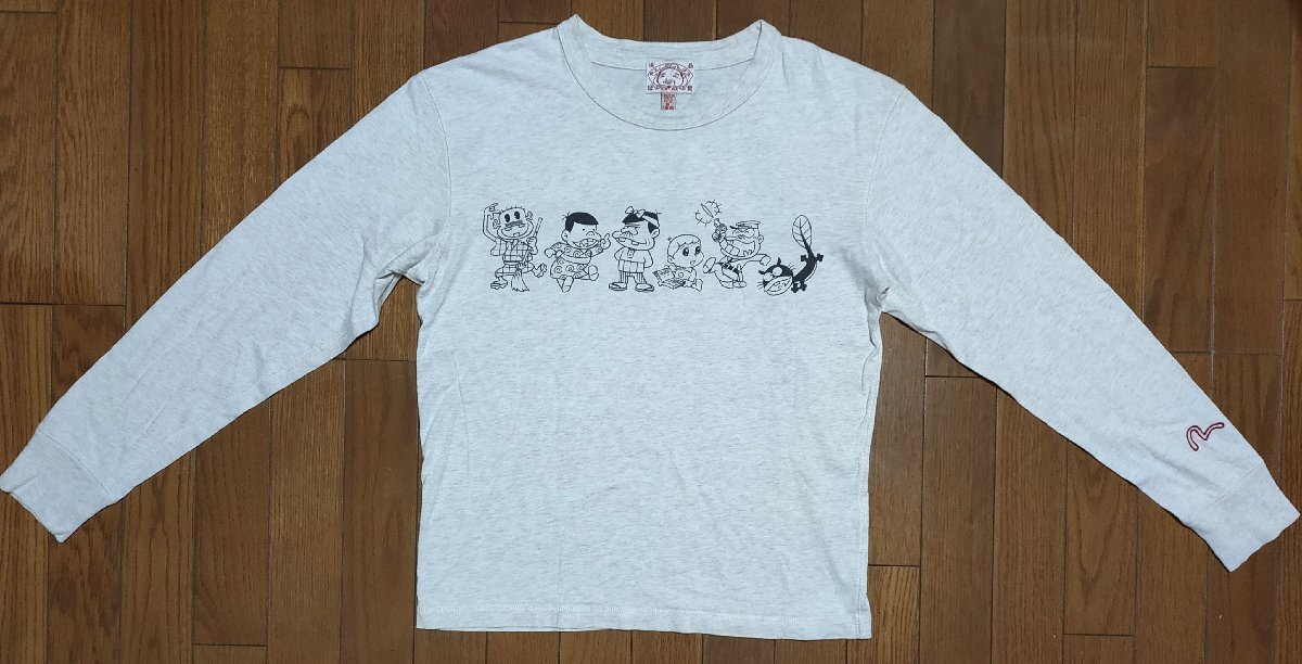 ★EVISU エヴィス×赤塚プロ 天才バカボン★ オールスター 長袖 Tシャツ プリント カモメロゴ刺繍 size38 アイボリーベージュ系 02922