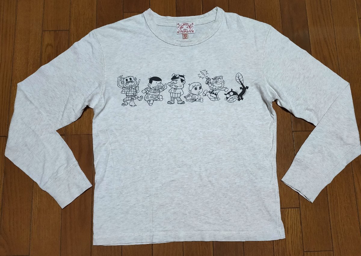 特徴:長袖 Tシャツ天才バカボン オールスター プリント、袖カモメロゴ刺繍