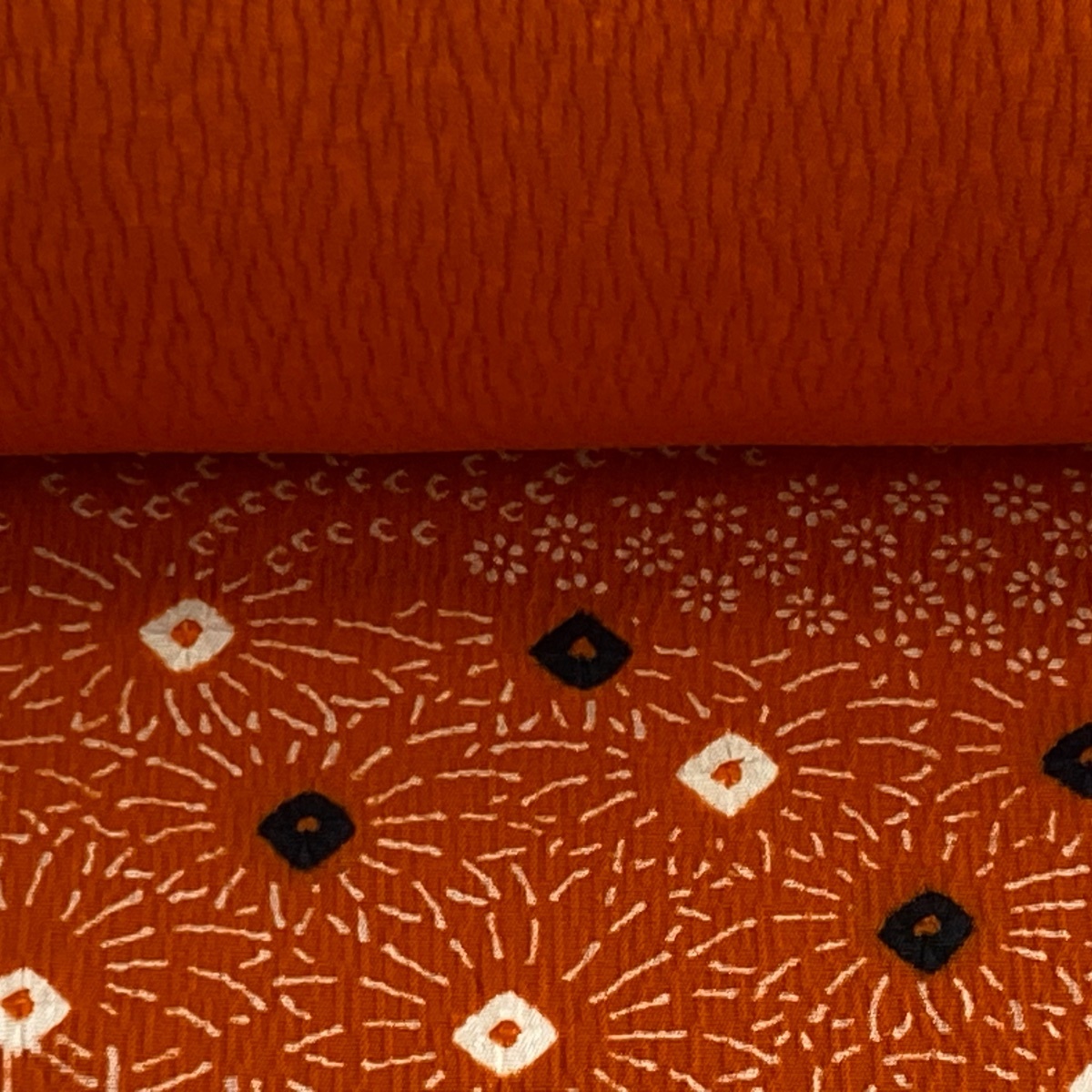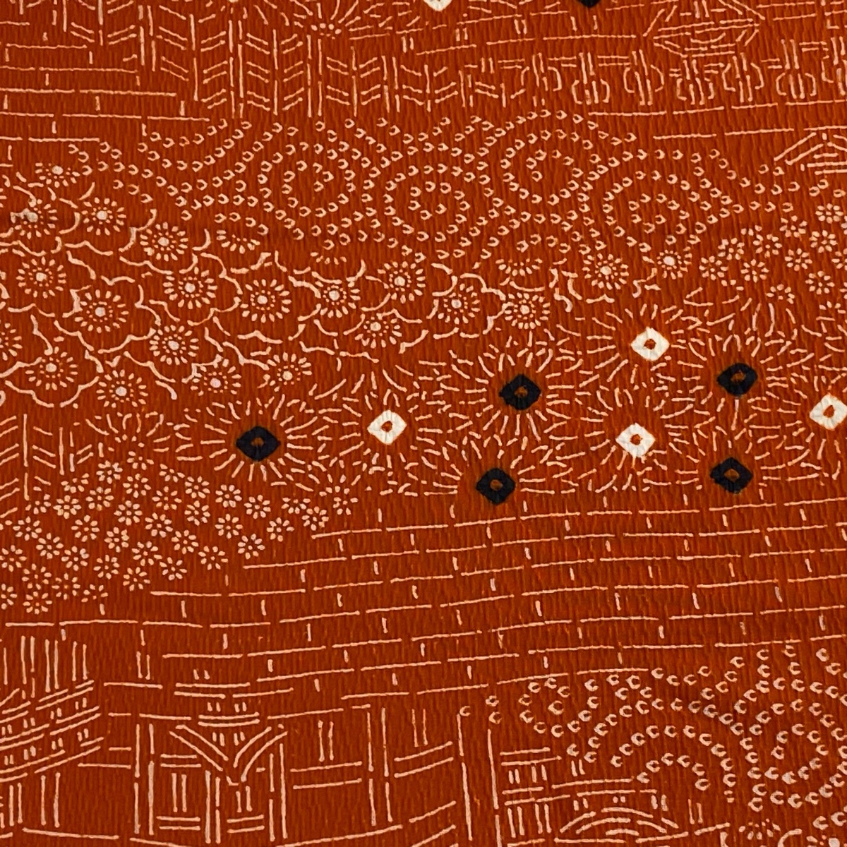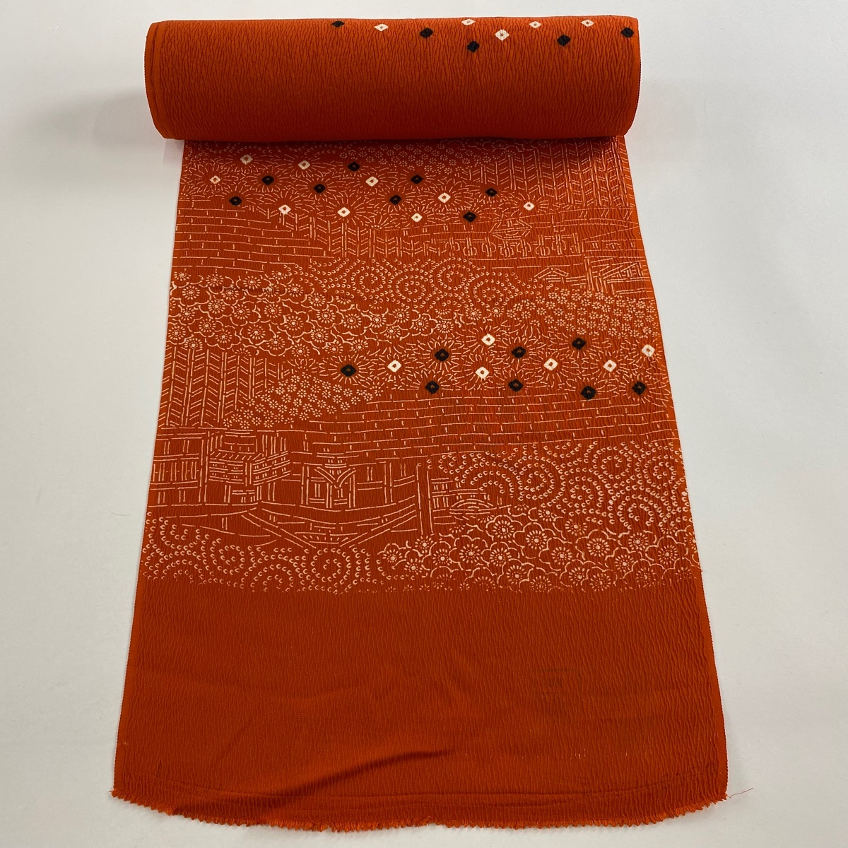 | 反物 秀品 小紋 桜 建物 絞り オレンジ 正絹 【中古】 |