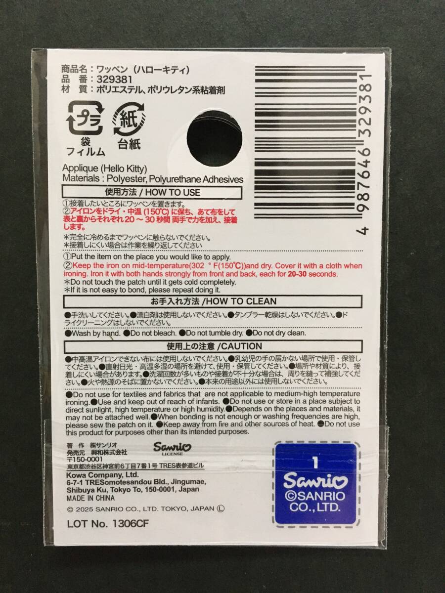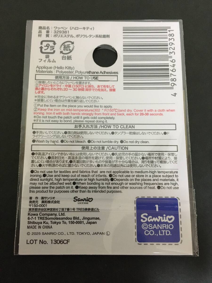 SANRIO/サンリオ ワッペン ハローキティ おすわりです☆彡新品未開封品です!