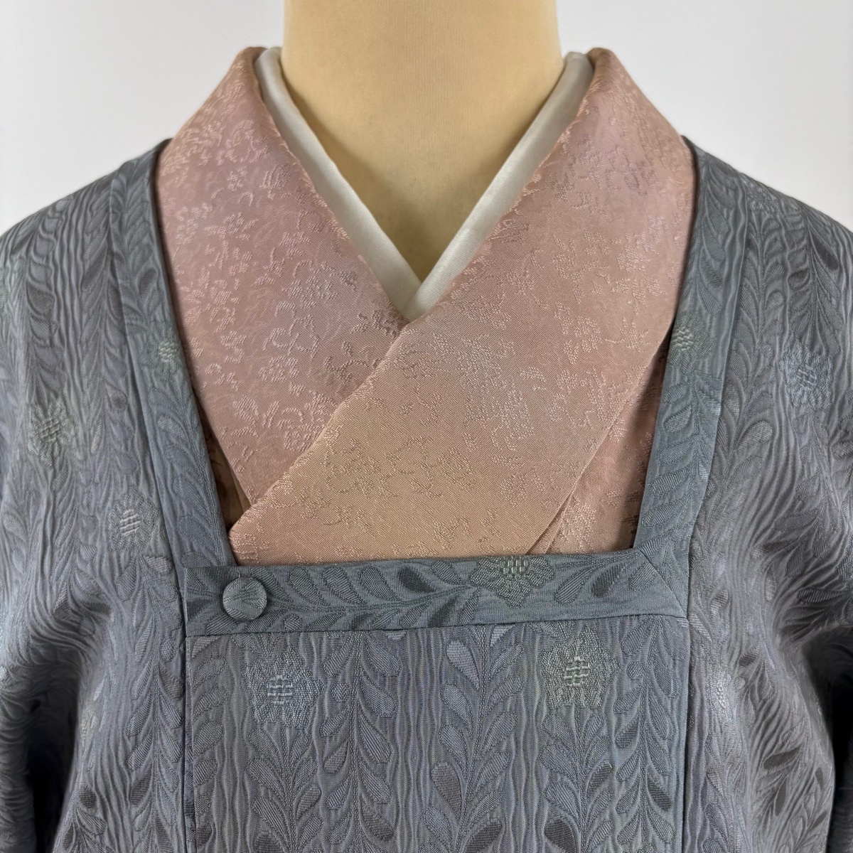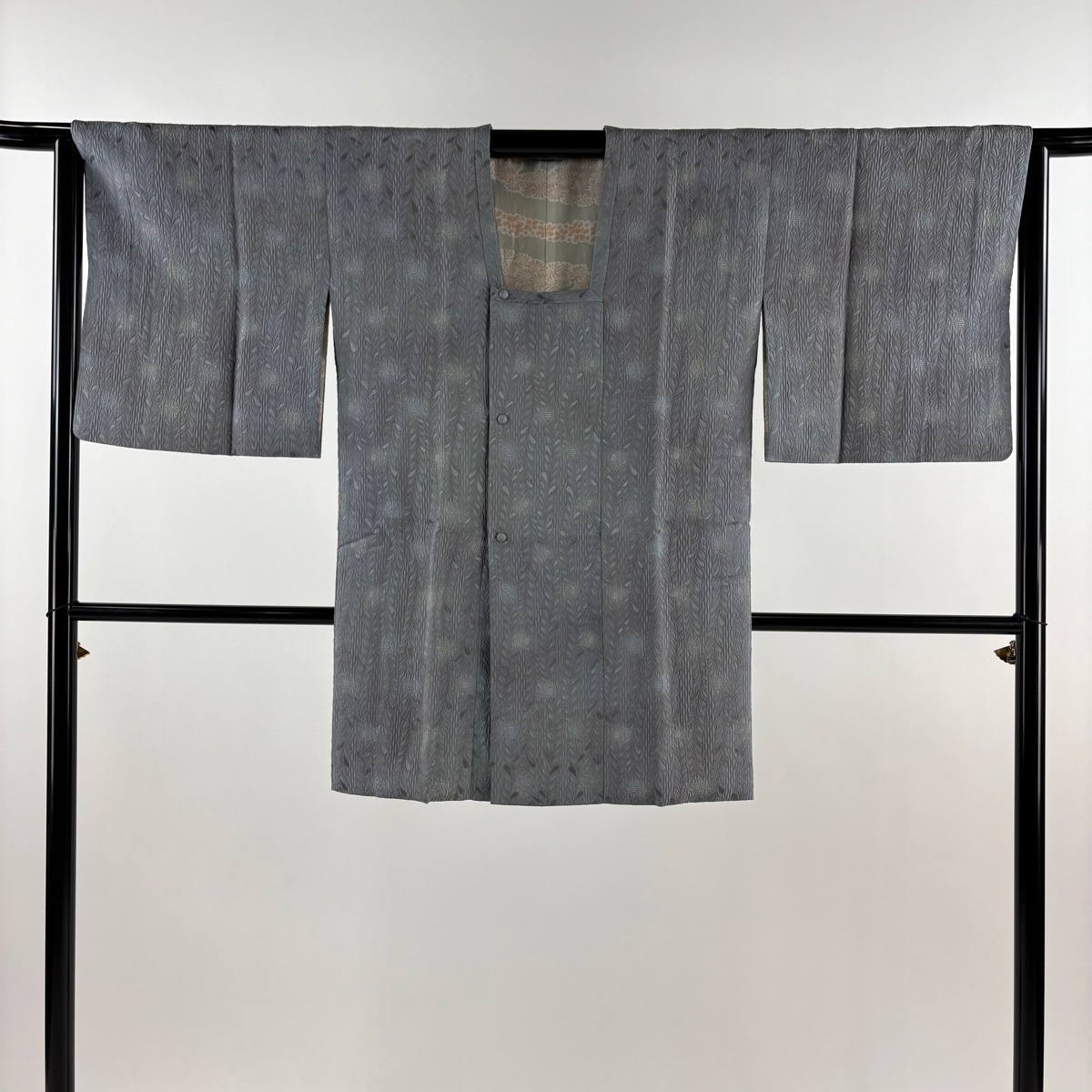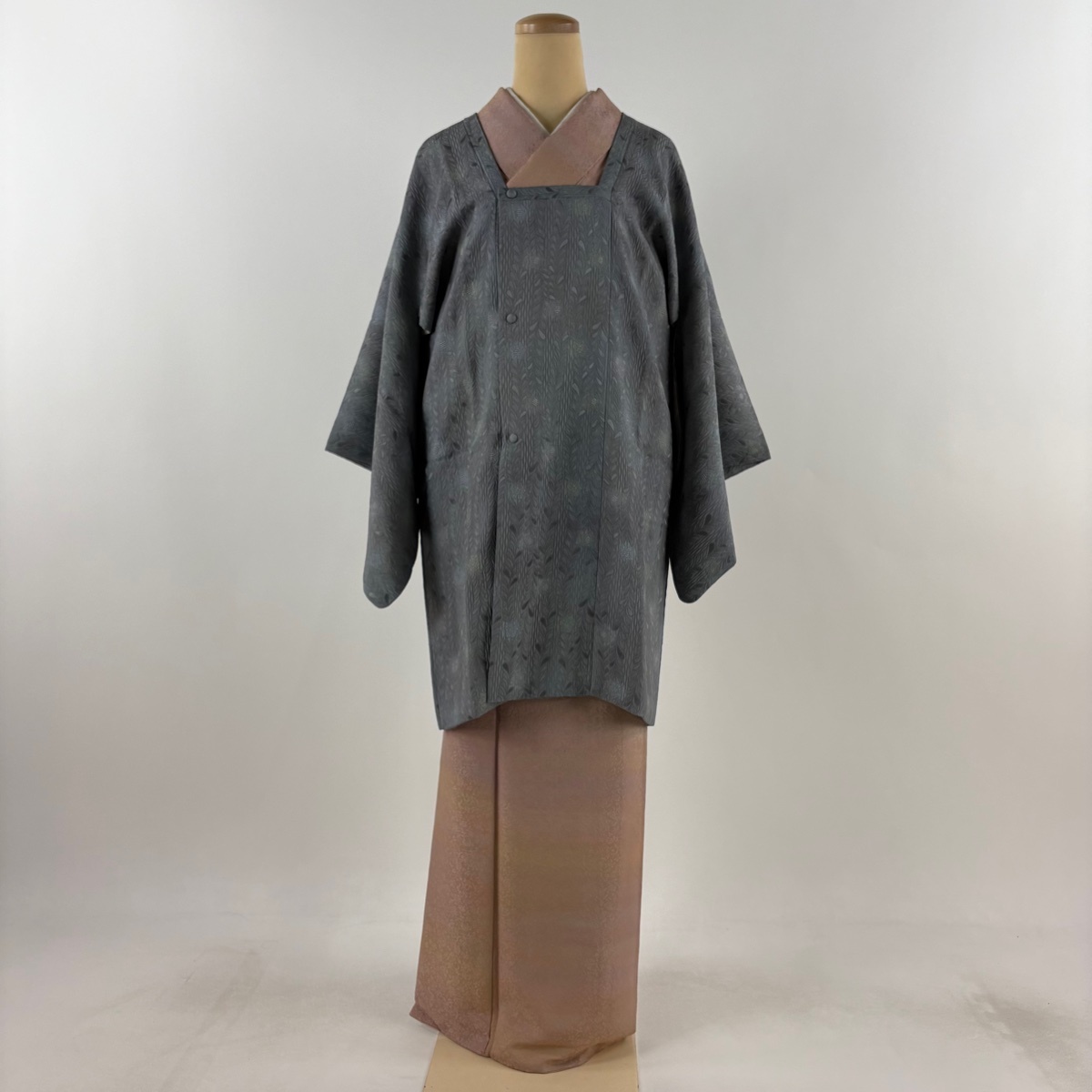 | 道行 美品 秀品 和装コート 角衿 草花 地紋 ぼかし 灰色 身丈91.5 裄丈64.5 M 正絹 【中古】 |