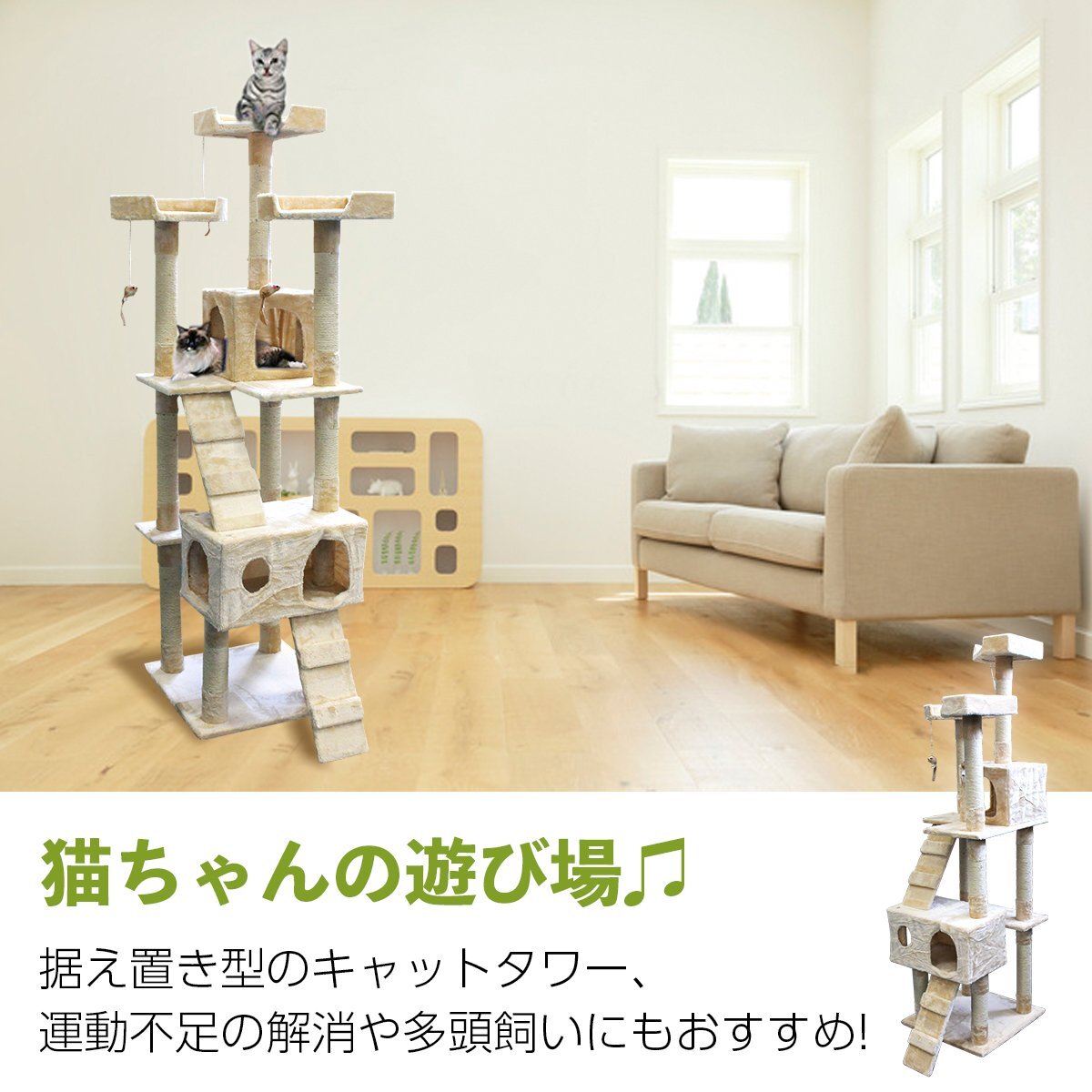 高さ170cm キャット タワー ベージュ ネコ ハウス 据え置き 爪とぎ 遊び場 隠れ家 置き型 猫 家 ビックサイズ