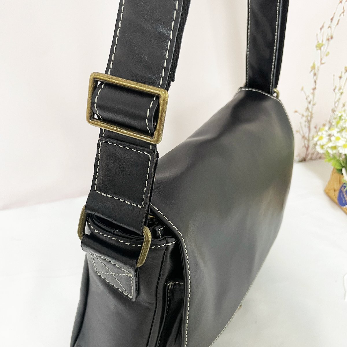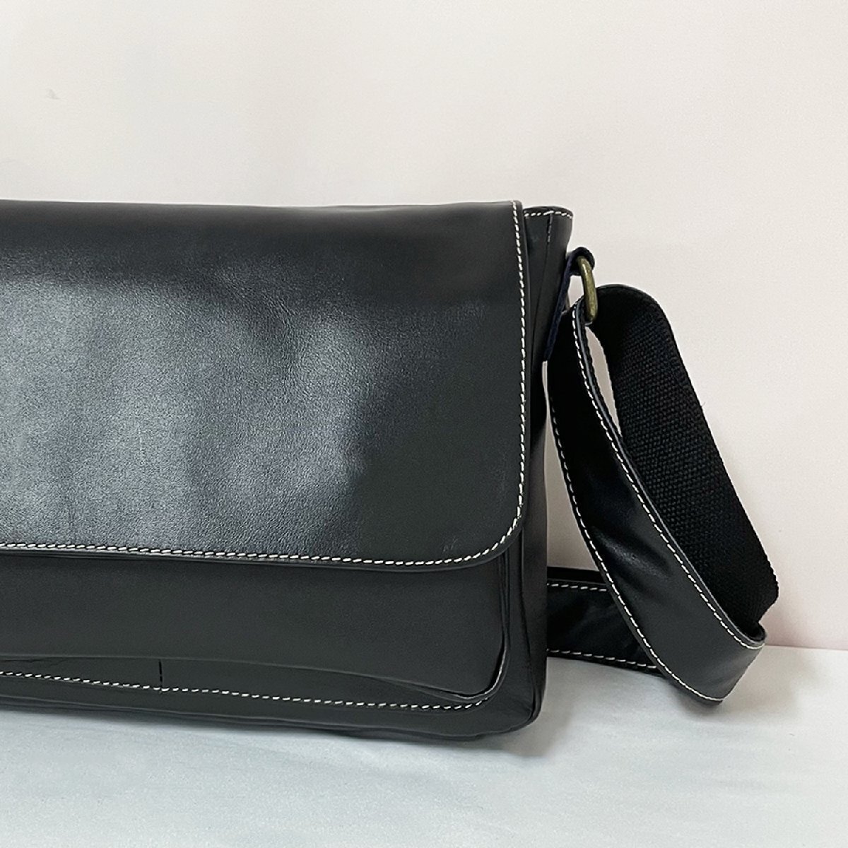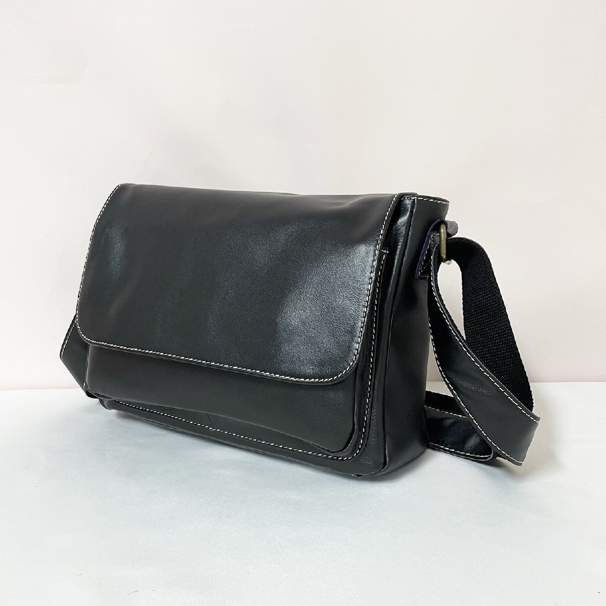 高級感溢れるレザーの風合いと、シンプルでおしゃれなデザインの高機能ショルダーバッグです。