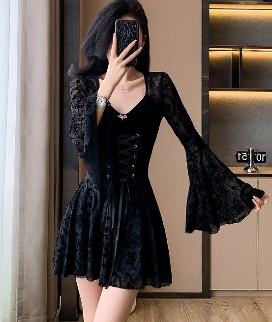 【L】着丈約79cm バスト約82-96cm 袖丈約63cm ウエスト約67-77cm
