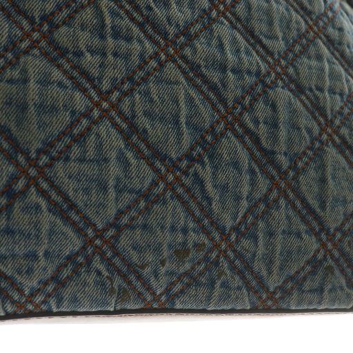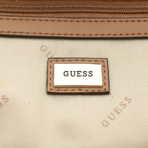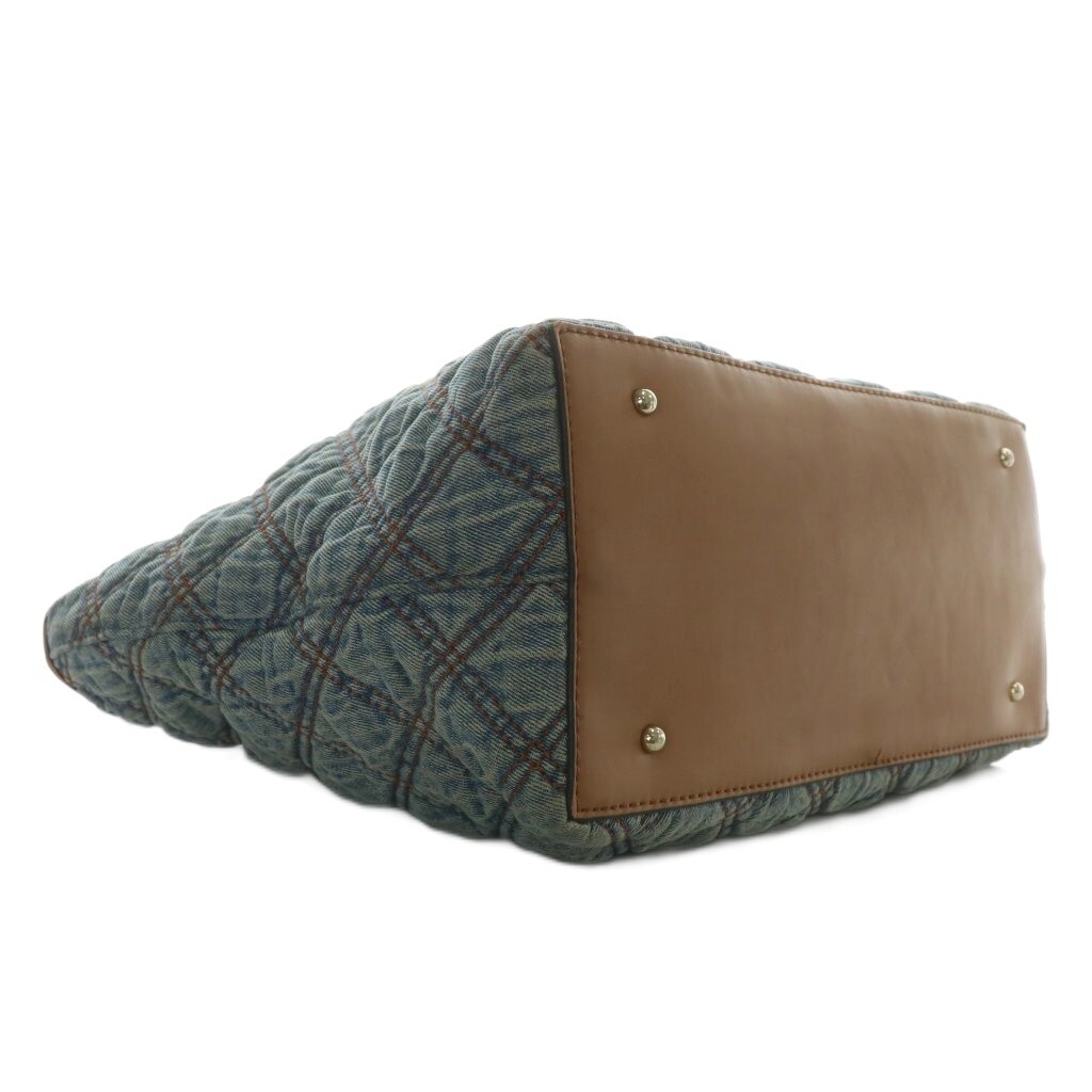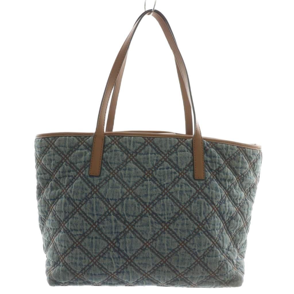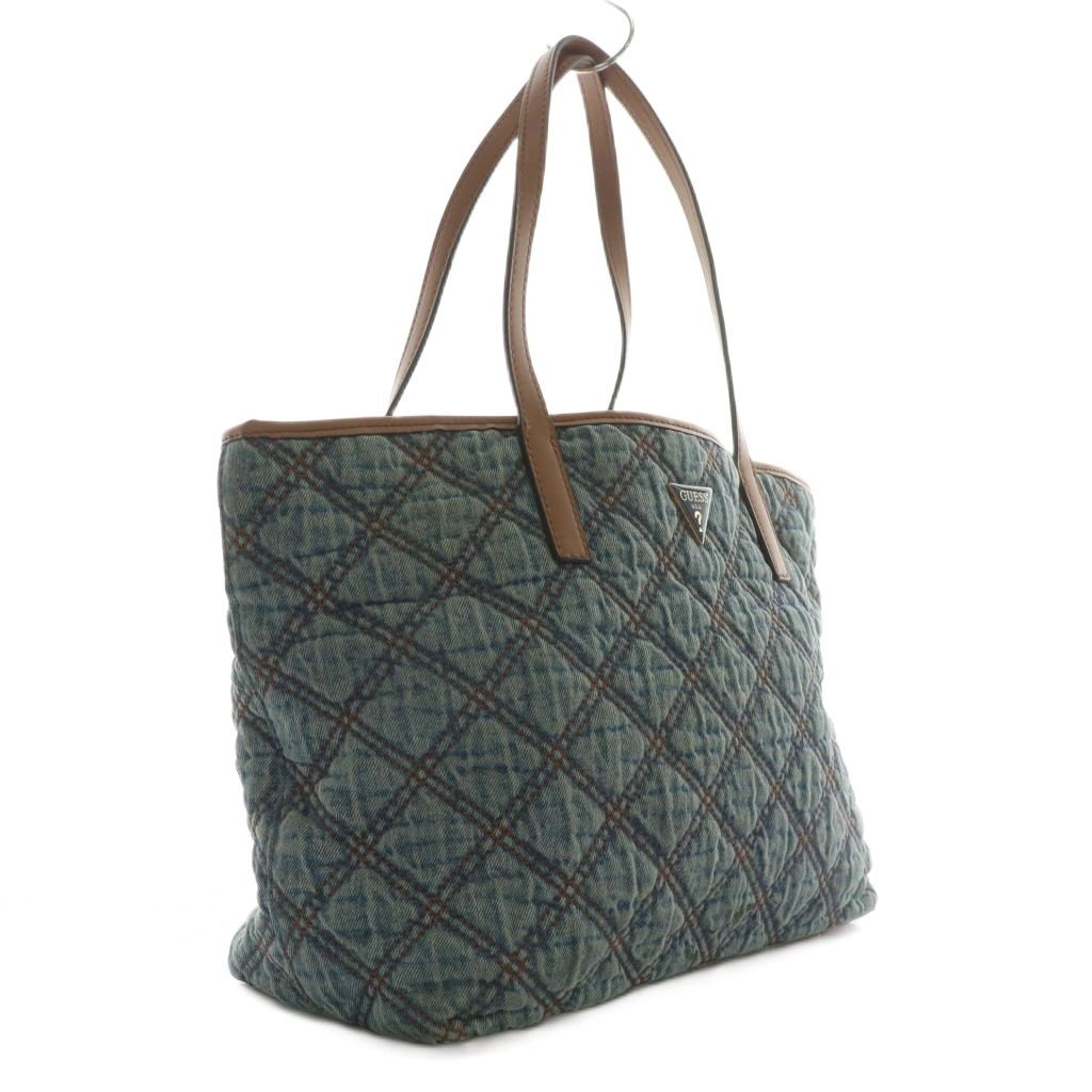 ゲス GUESS トートバッグ ハンド デニム キャンバス レザー キルティング ポーチ付き 三角ロゴ 青 ブルー 茶色 ブラウン