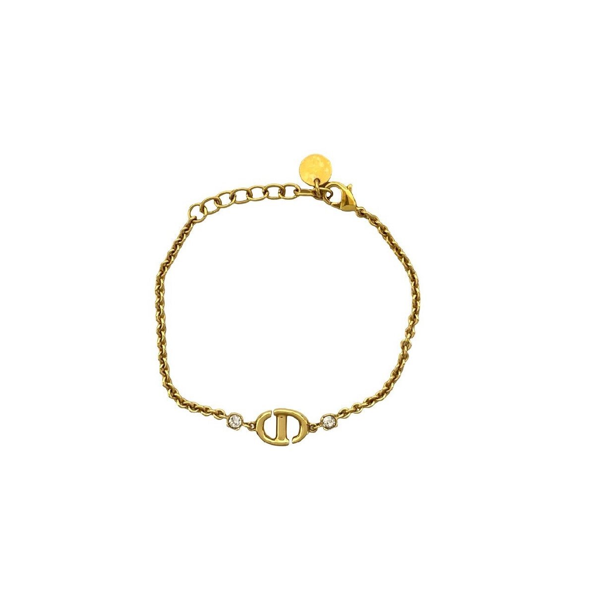 極 美品 Christian Dior ディオール CD ロゴ ビジュー モチーフ GP チェーン ブレスレット バングル ゴールド アクセサリー 20944