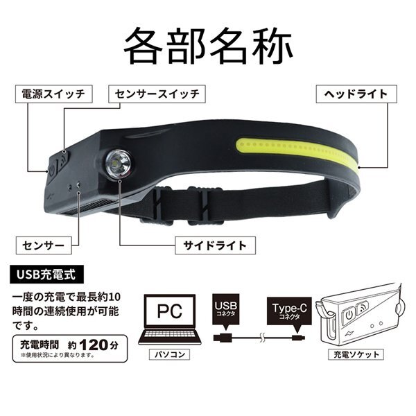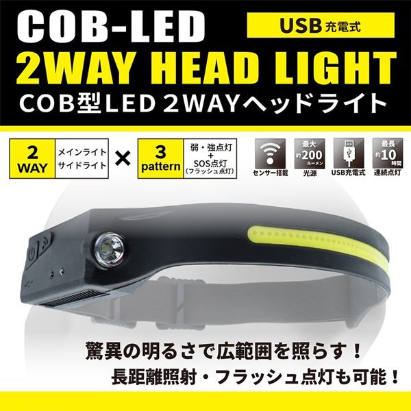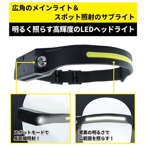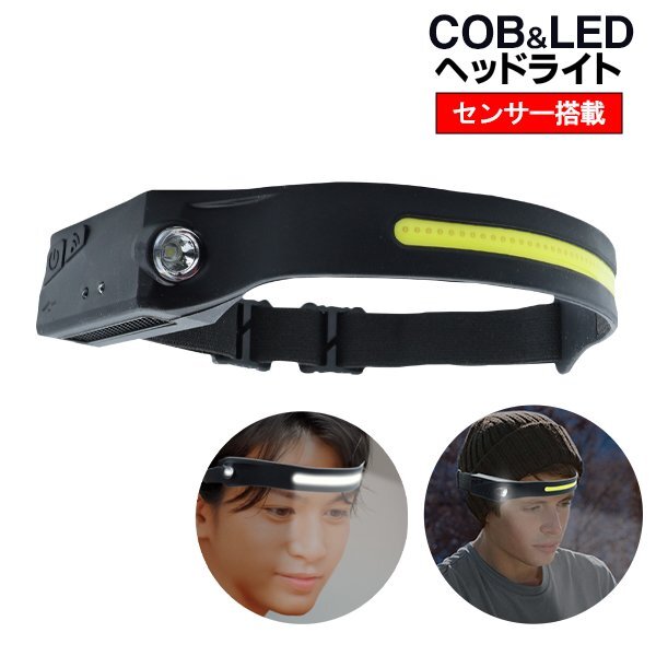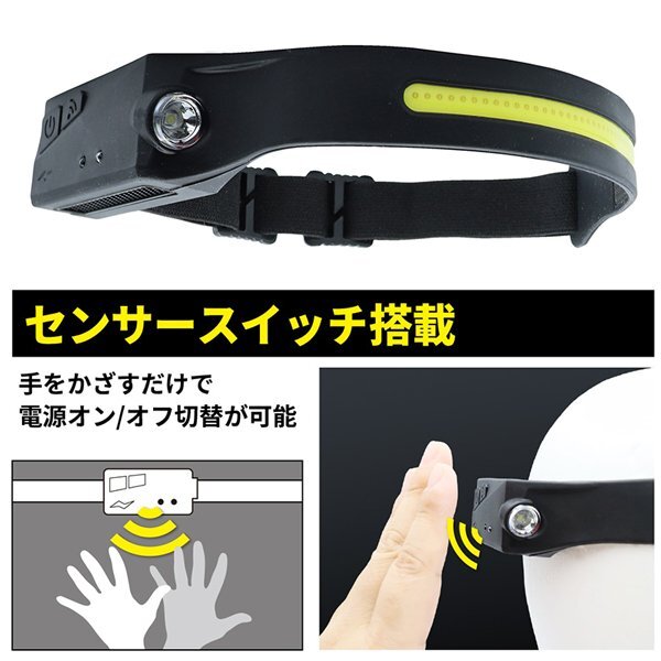 ハンドセンサー搭載 ヘッドライト 最強 COB型 充電式 高輝度 LED ライト 屋外 夜間 作業灯 アウトドア 送料無料 7M◇ ヘッドライトHRN-647