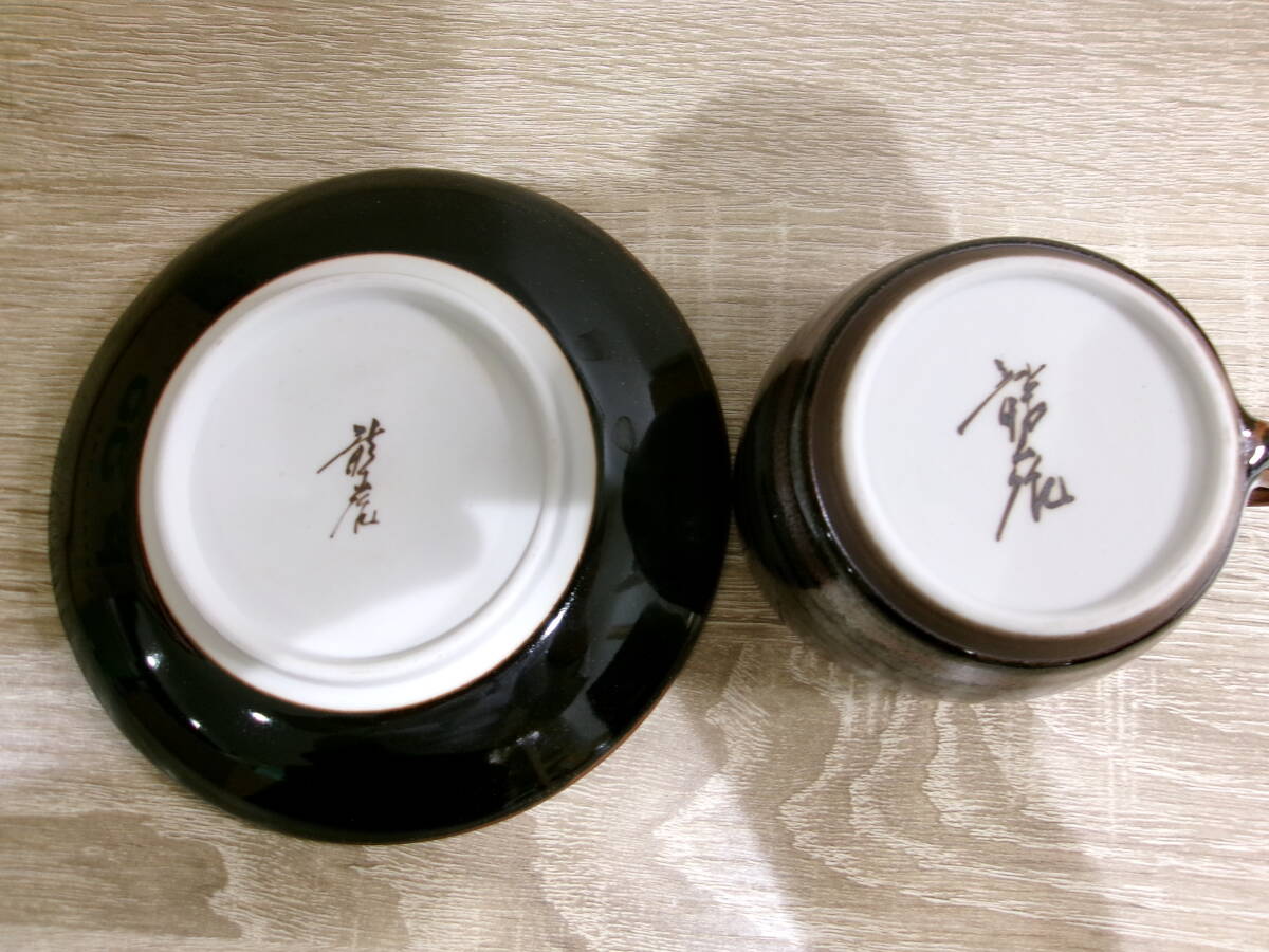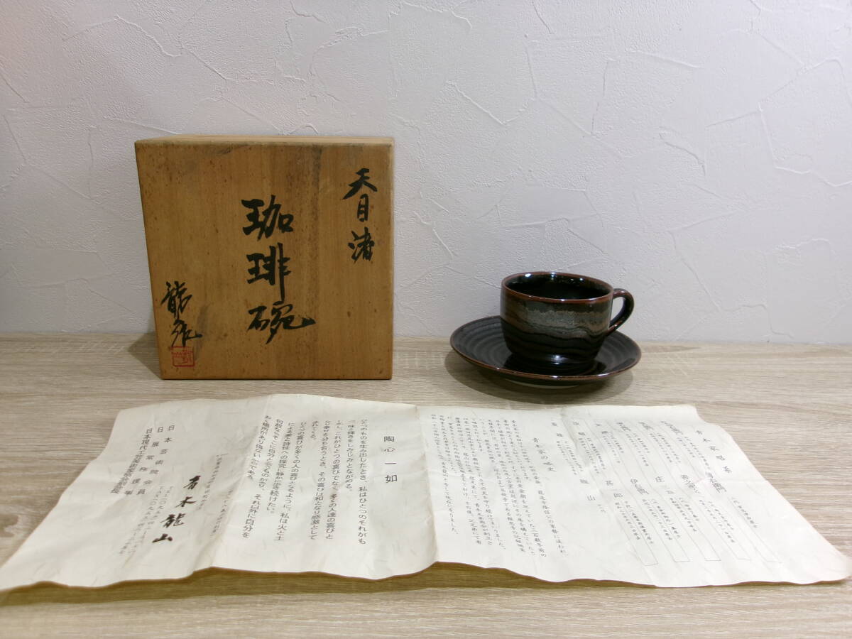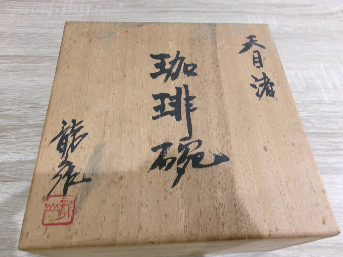 天目渚 珈琲碗 コーヒーカップ カフェ 青木 龍山 作 日本 現代 工芸 美術 品 しおり 箱付き 希少 現状品 激安 1円スタート