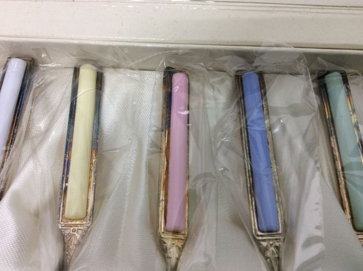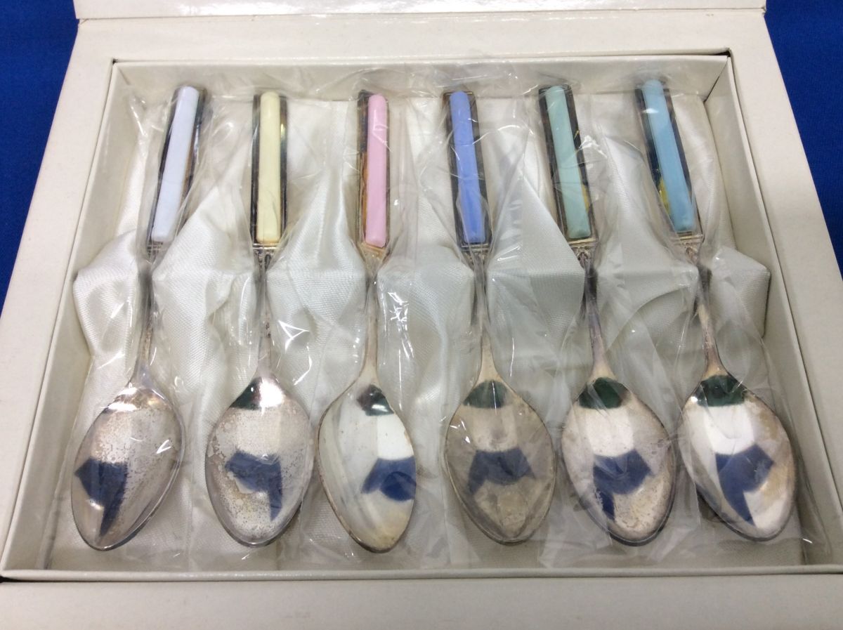 ■商品の状態:未使用の保管品。全体的に非常に良好な状態ですが、レトロスプーンの一部に持ち手銀色部分の変色が見られます。長期保管による自然な経年変化としてご了承ください。詳細は画像をご確認ください。
